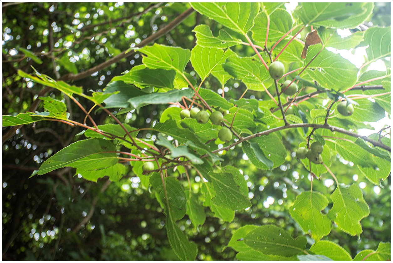 ▽ 하산 길에 큰 나무를 타고 엄청난 위세로 덩굴을 뻗은 다래나무가 열매를 주렁주렁 달고 있다. 가을쯤 익게 되면 꽤 많은양을 수확할 수 있을 것 같다.