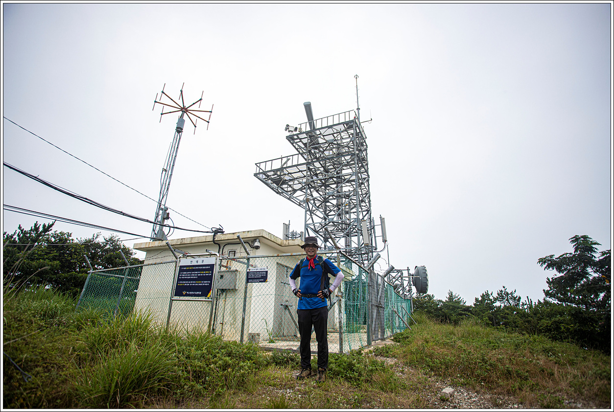 ▽ 드디어 깃대봉에 올랐다. 손죽도에는 정상석이 있는 섬이 한군데도 없어 이곳 통신탑을 블야에서는 인증장소로 삼았다.
