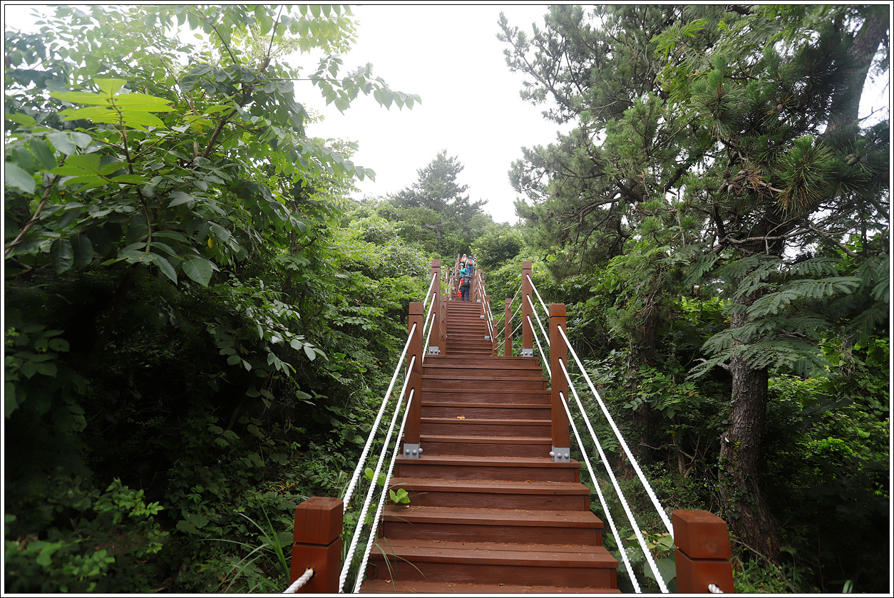 ▽ 드디어 정상이 가까웠는지 아까 배를 타고 오면서 보였던 데크계단이 나온다.