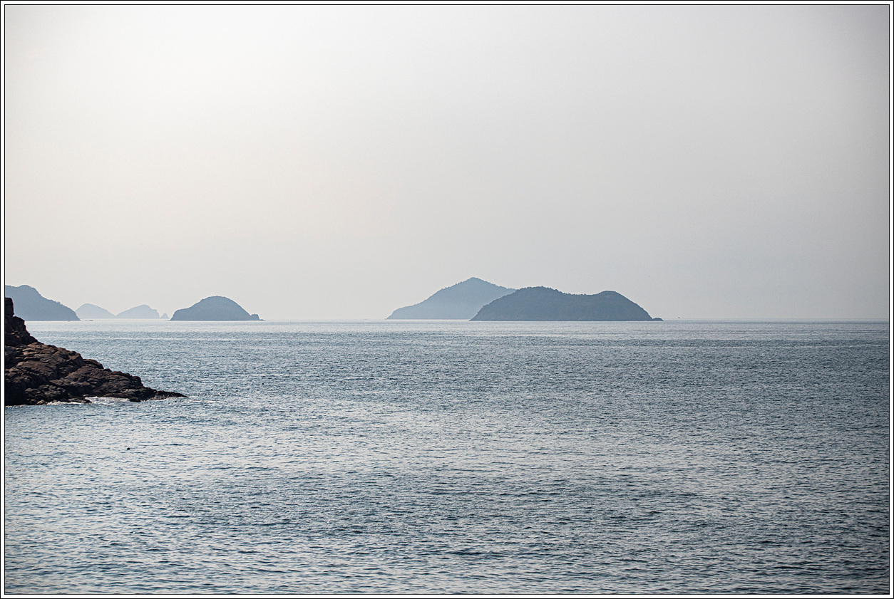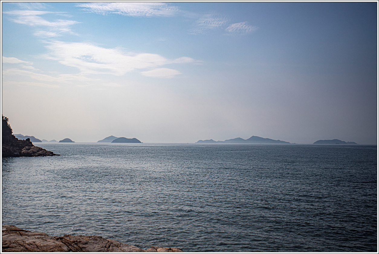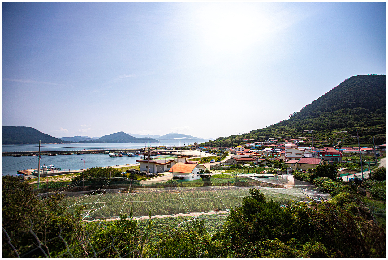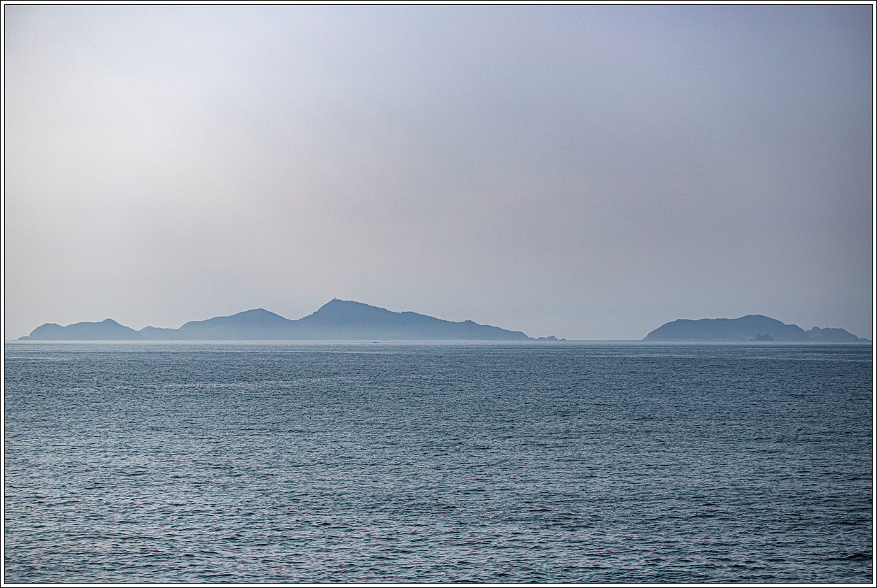 ▽ 남쪽 방향 멀리 소지도와 그 뒤로 해무에 가린 국도가 망원렌즈에 잡혔다.
