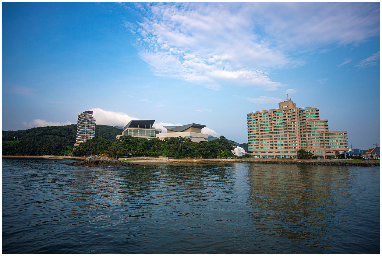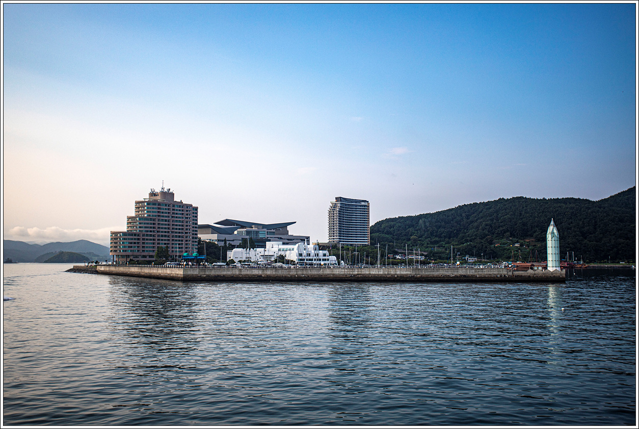 ▽ 왼쪽부터 스탠포드호텔, 가운데 통영 국제음악당, 오른쪽 금호통영 마리나리조트