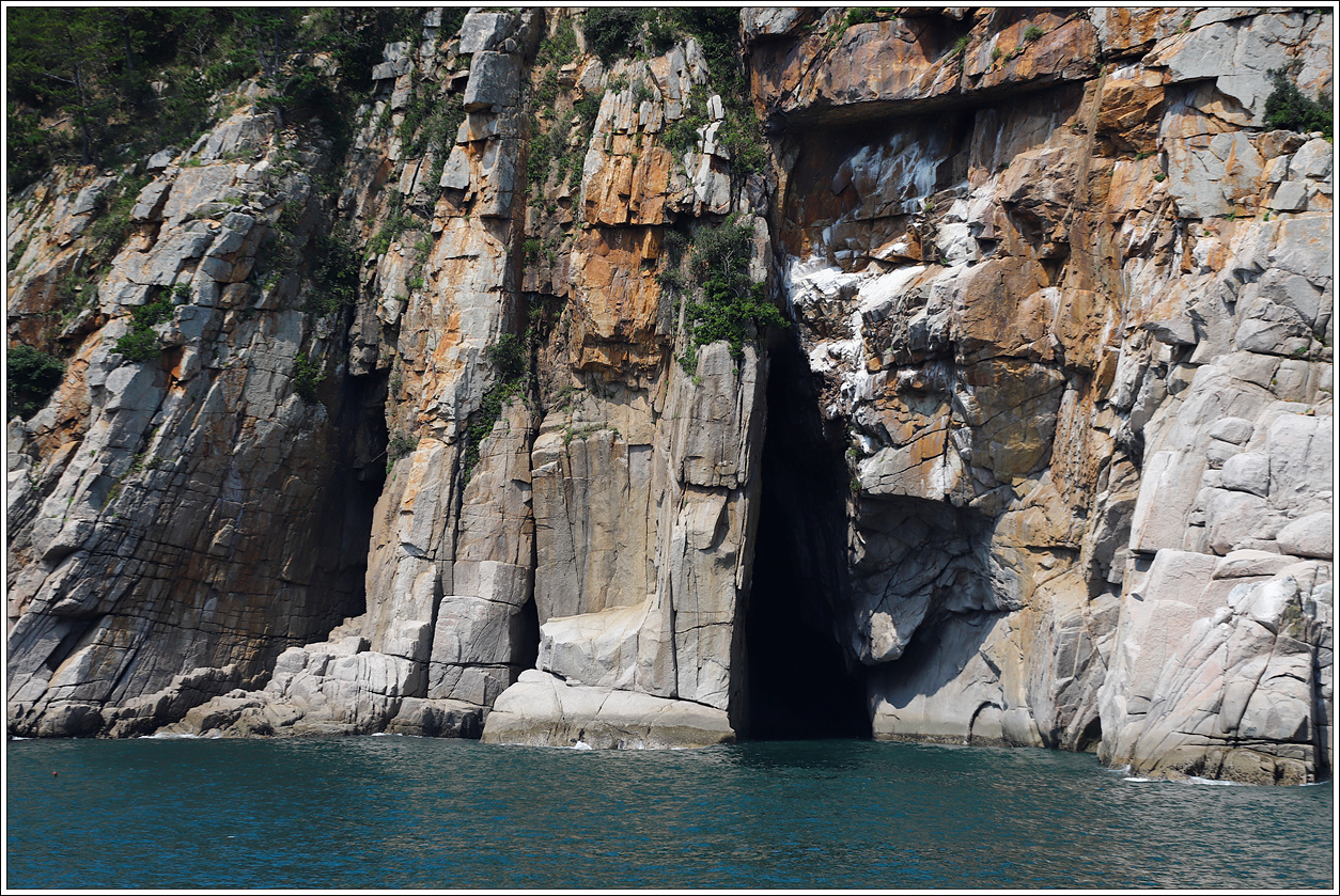 ▽ 반대편 해식애와 동굴을 당겨 보고...