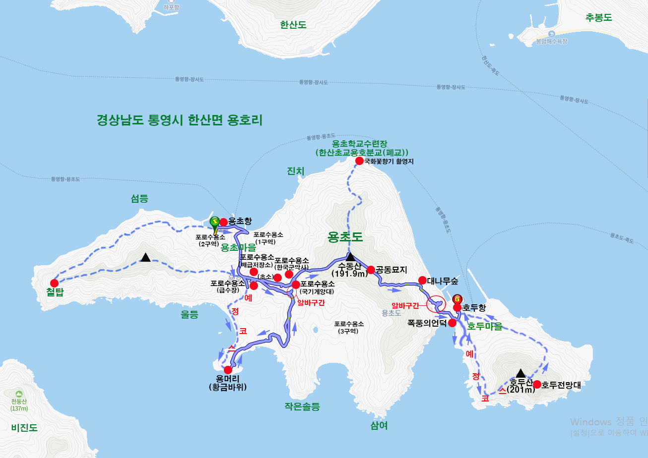 · 11:50-12:10-용초도 호두항에서 한산도 진두선착장으로 이동