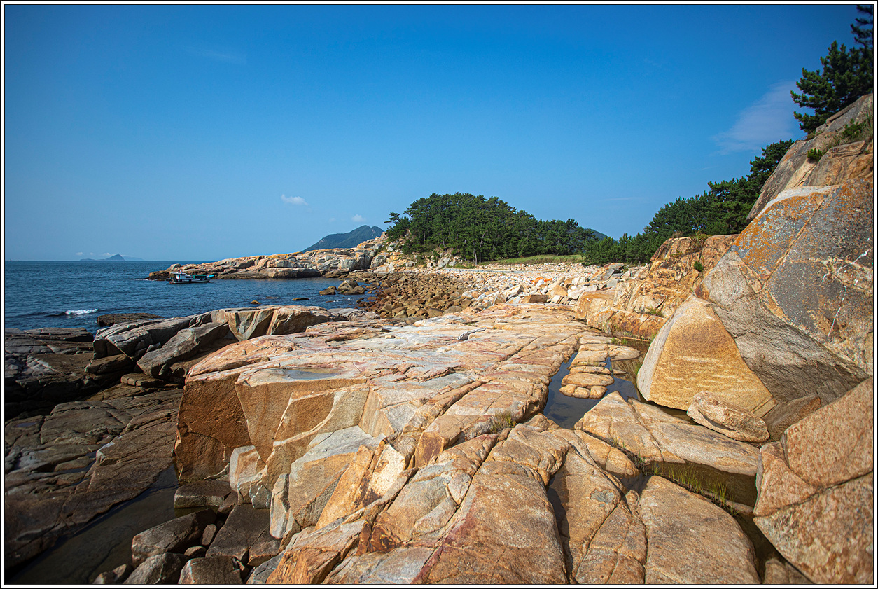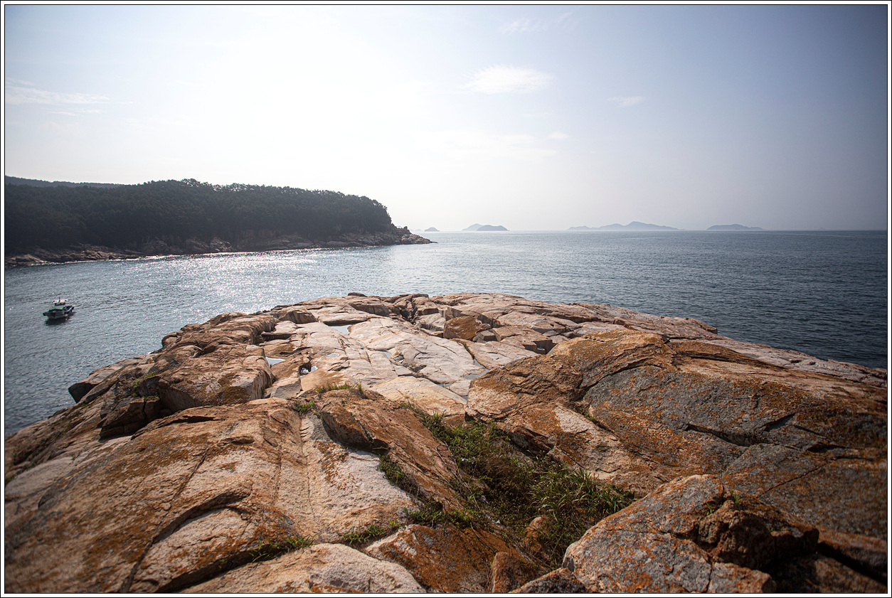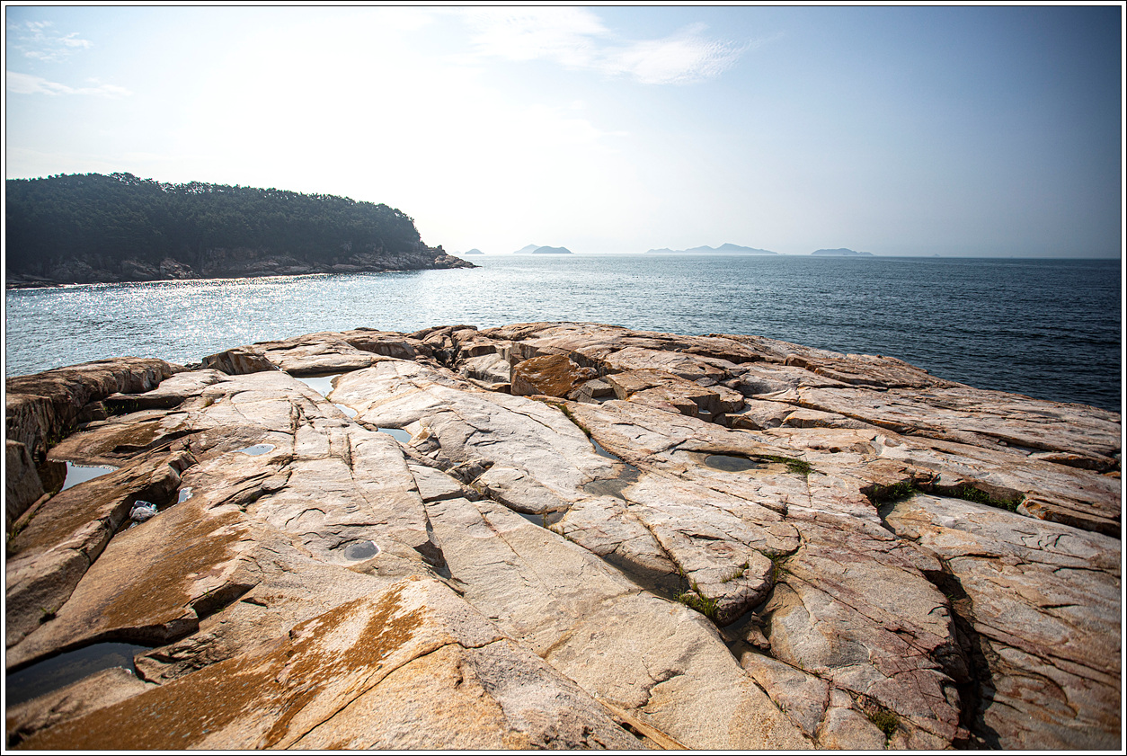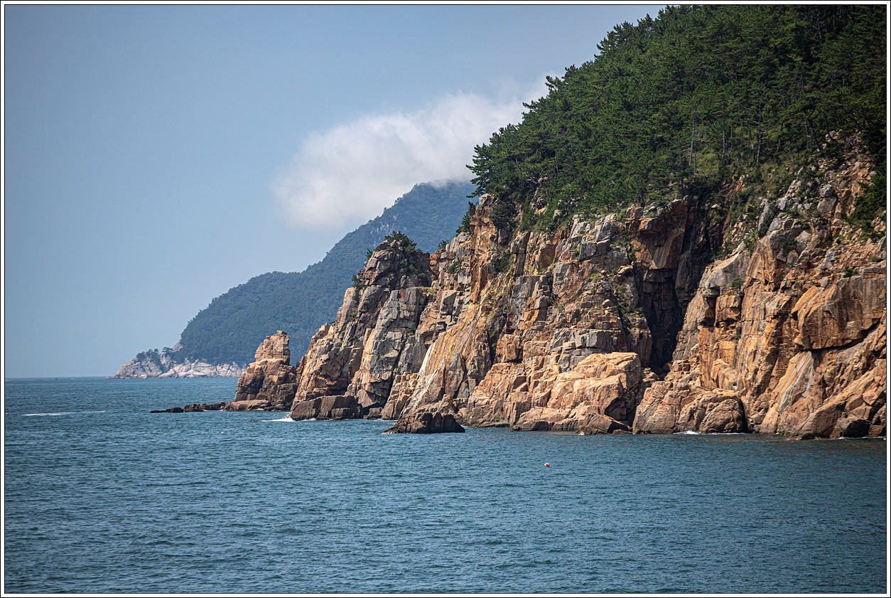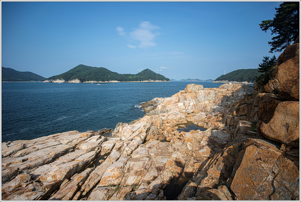 ▽ 이곳 용머리의 황금바위는 일출시 측광으로 노을과 함께 촬영하면 모두 황금빛으로 담을 수가 있겠다. 황금빛이라기 보다는 붉은 빛에 더 가깝다고 볼 수 있다. 철분 성분의 암석이 산화되어 이런 빛을 띤 것 아닌가 하는 생각이 든다. 용초도에서의 주변 조망은 여기 밖에 없는데 이제 되돌아 갈 시간이다.
