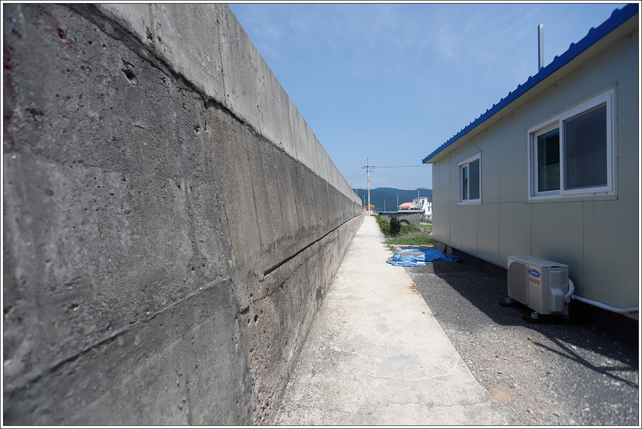 ▽ 호두마을 북쪽편으로는 막힌데가 없어 바람골이나 다름 없고 지대가 낮아 태풍의 피해를 줄이기 위해 길이 약 400m, 높이 4m 정도의 방파제를 설치해 놨다. 오죽하면 폭풍의언덕이라는 명칭이 붙었을까 싶다.