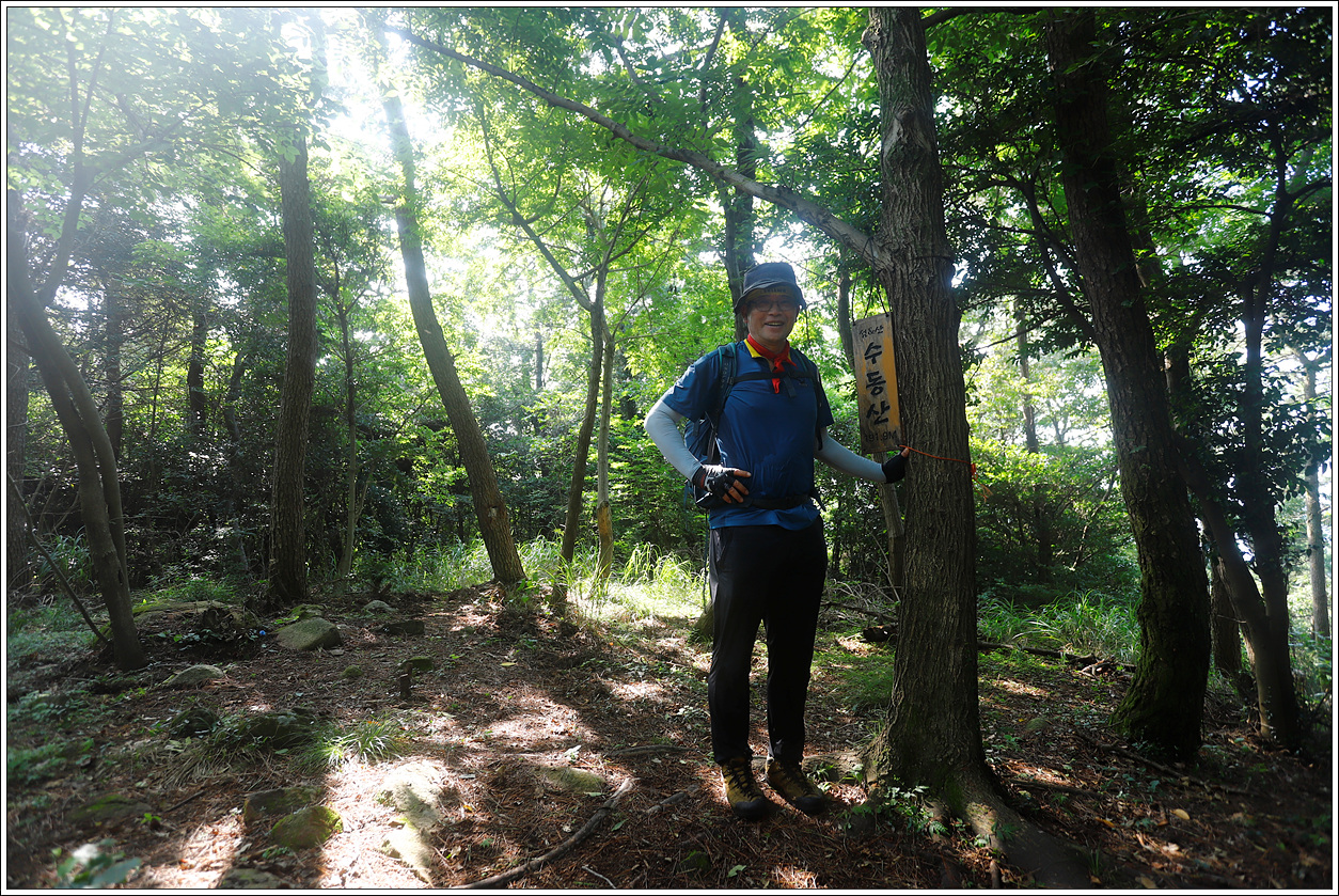 ▽ 왔던 길로 되돌아 가는 방향의 풍경으로 가운데 볼록 나온 봉우리가 수동산이다.
