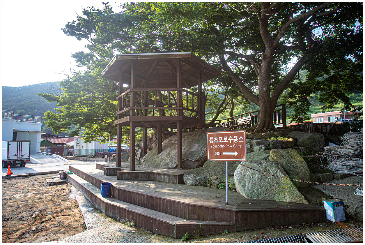 ▽ 그러나 조금 더 가면 또 하나의 정자가 나오고 용초포로수용소라는 안내판이 있는 곳으로도 등로가 있다.