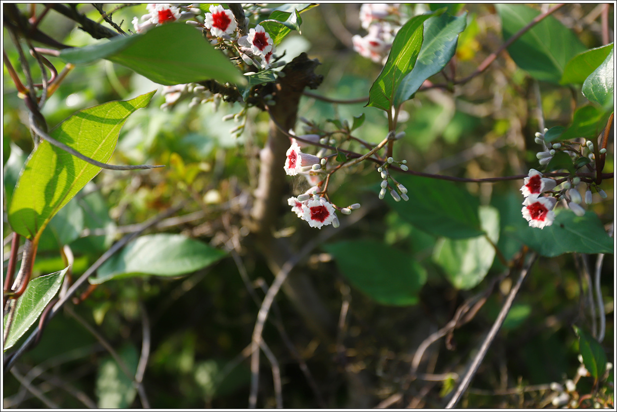 ▽ 덩굴성 식물인 <계요등>이 활짝 펴 객들을 반겨준다.