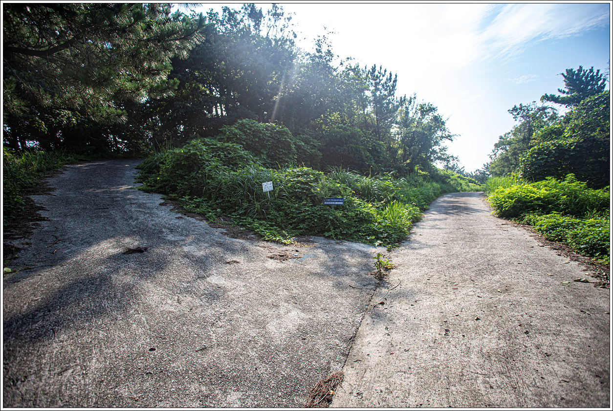 ▽ 들머리 초입으로 승용차 한대가 다닐 만한 폭으로 용머리 해변과 포로수용소 국기게양대가 있는 곳까지 도로가 나있다.