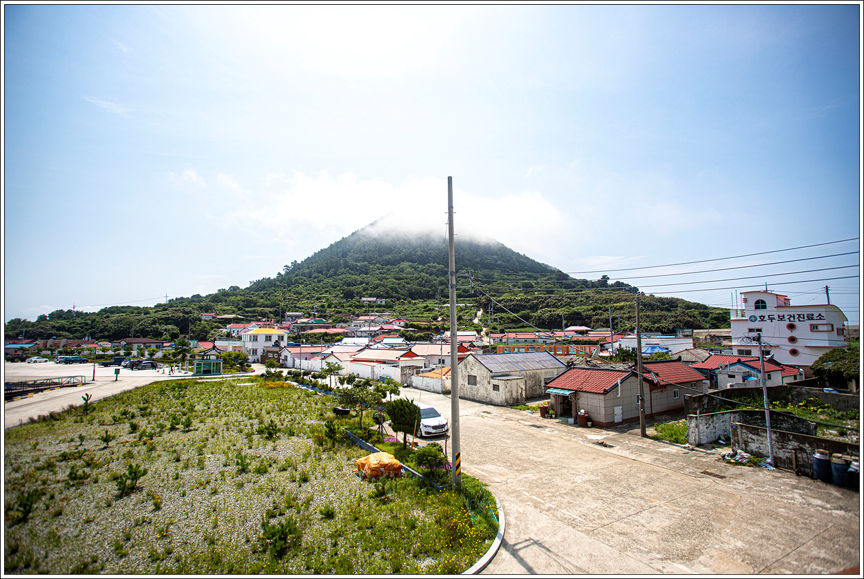 ▽ 용초도의 호두산과 호두마을 그리고 호두항 전경이다. 호두산은 분명 201m라고 도상에 표시되어 있는데 수동산(191.9m)을 최고봉이라고 일컬으며 더 알아주고 있으니 용과 호랑이가 싸우는 형국에 용을 더 알아주어서 일까, 수동산이 다른 얕은 산을 거느리고 있어서 그 규모가 커서일까, 그렇지 않으면 수동산과 호두산이 따로 떨어진 섬으로 봐서 수동산을 용초도의 최고봉이라고 일컫는지는 알 수가 없다. 아무튼 9m나 더 높으면서 수동산에 그 명성을 뺏긴 것이 의아스럽다.