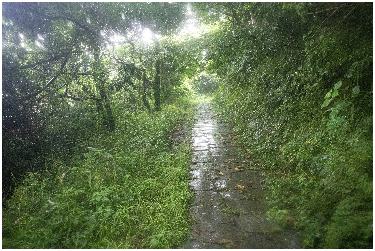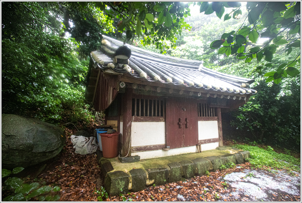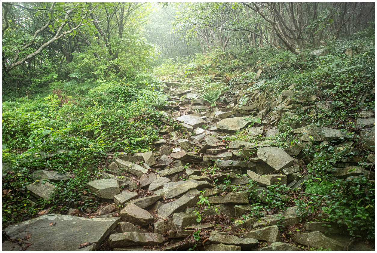 ▽ 고래조지 방향으로 내려가는 길은 정비가 안되어 비에 젖은 숲길을 헤치며 가자니 이미 옷은 다 젖은 상태다.