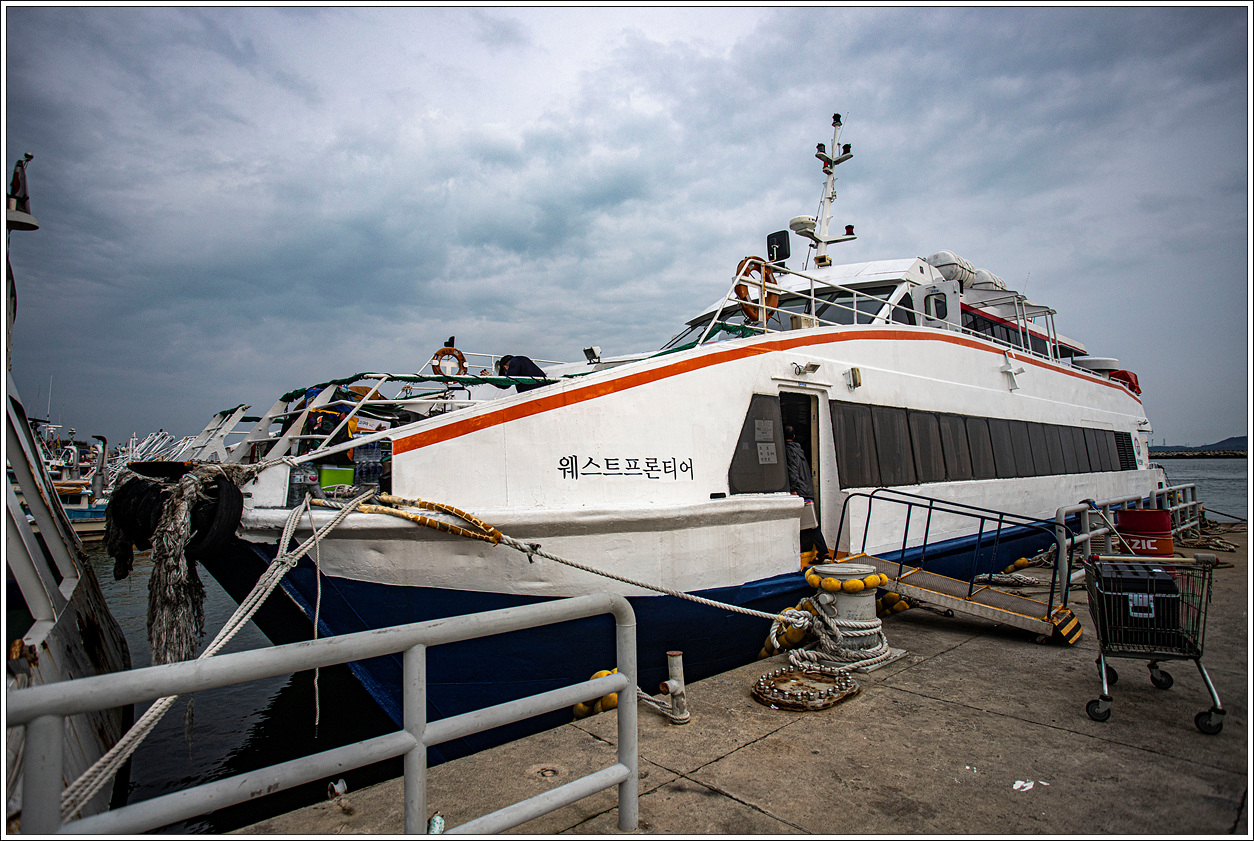 ▽ 고속훼리인 웨스트프론티어호를 타고 가는 중 두개의 선착장인 호도와 녹도를 들렀다가 외연도에 도착하게 된다. 날씨는 잔뜩 흐렸으나 다행히 바람은 그리 불지 않는다. 오후에 비가 온다는 예보는 있으나 오늘 만큼은 오보가 되었으면 하는 바램이다.