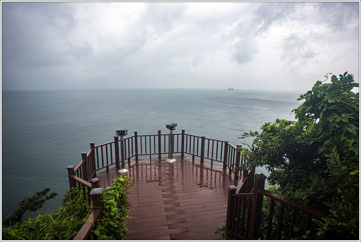 ▽ 노랑배 바로 윗쪽에 자리한 전망대에 도착, 망원경이 세워져 있긴 하지만 앞쪽에는 작은 바위섬 이외에는 뵈는 것이 없다.