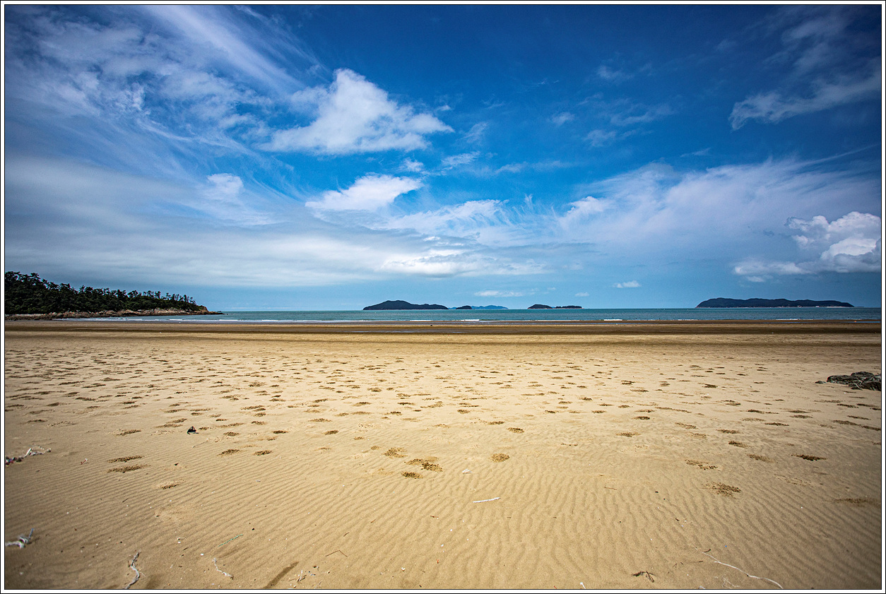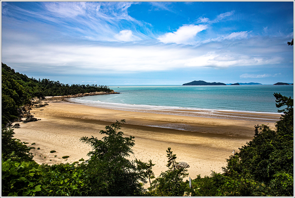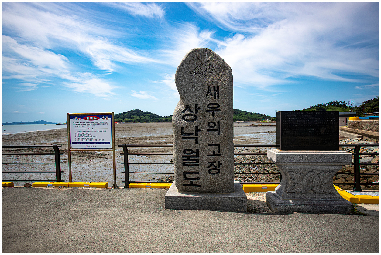 ▽ 고운 모래사장도 그렇지만 앞쪽의 대이각도, 소이각도, 송이도 등의 섬이 그림같이 다가온다. 하루, 이틀밤 추억 쌓는데는 그만일 것 같다. 다만, 완전히 간조가 된다면 먼거리로 나가야 바닷물을 접할 수 있다는 단점이 있겠다. 이곳은 풀등이 많이 생기는 등 새우등의 서식 장소로도 알맞기에 예로부터 많은 새우들이 잡힌 것 같다.