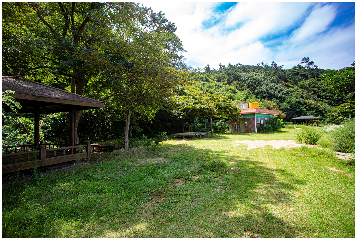 ▽ 이곳 해수욕장은 화장실과 바깥에는 개수대까지 설치가 되어 있고, 정자 쉼터도 두개나 되어 있는 등 내가 지금까지 어느 섬을 둘러 보아도 백패킹 장소로는 최고로 보인다.