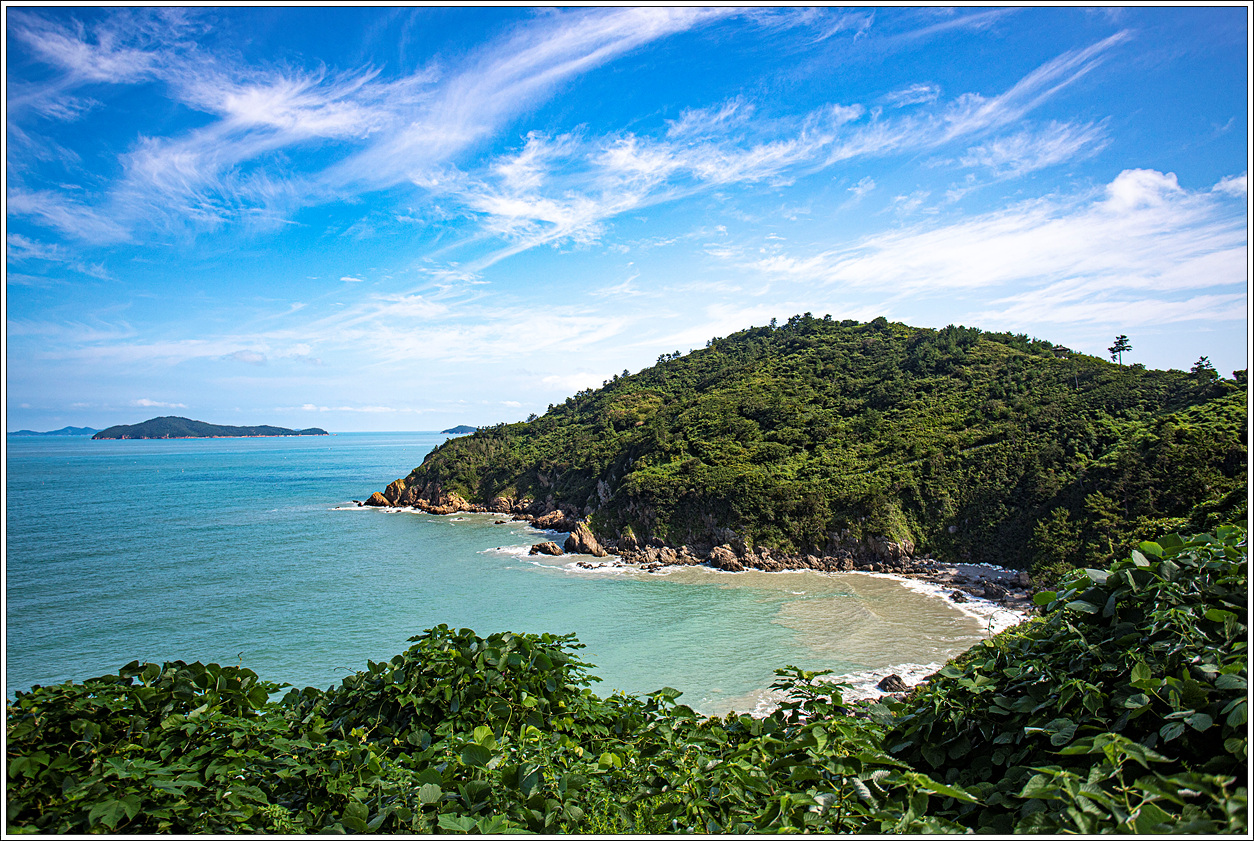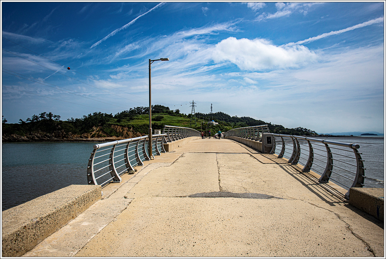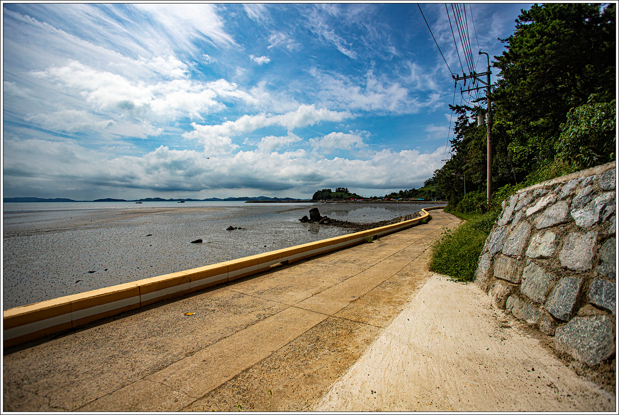 ▽ 파란 하늘에 구름조차도 보기가 좋다. 마을로 가는 해변로를 따라 멀리 상월도를 보며 걷는 첫 발걸음이 가볍다.