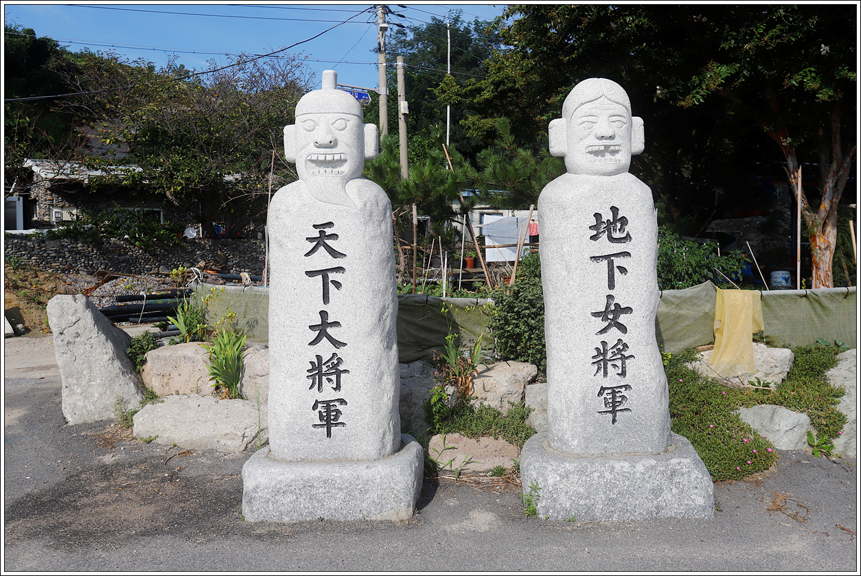 ▽ 세운지 얼마되지 않은 듯한 남녀 석장승이 마을 이정표로 세워져 있고 마을 지키는 수호신 역할도 예로부터 해 왔다.