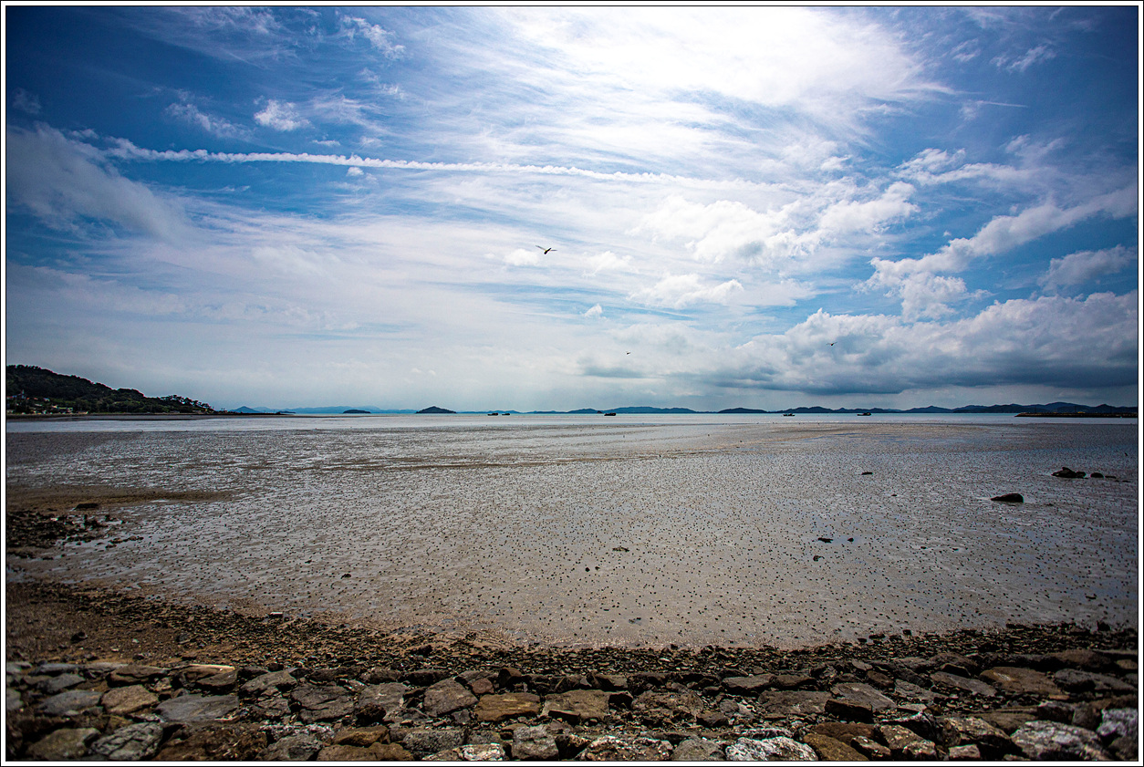 ▽ 동쪽 방향의 갯벌 풍경...멀리 몇 척으로 보이는 고깃배가 새우잡이 배련가!