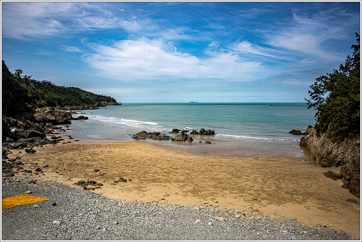 ▽ 재계미 해변의 풍경으로 내려가 보고자 했으나 길이 나 있지 않아 그냥 패스하기로 한다. 모래사장이 아닌 몽돌로 이뤄진 해변풍경...