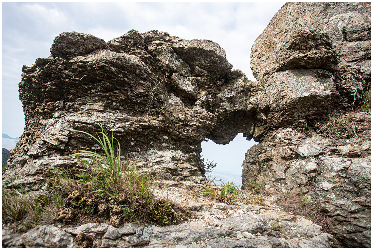 ▽ 지난 산행에서는 해산굴을 통과하는데 답이 없을 것 같아 포기했는데 이번에는 그 당시 있었던 로프도 없는가운데 통과했으니 모든 일은 마음 먹기에 달렸다. 해산굴 바로 위가 정상이므로 통과하자마자 엉겹결에 사진 한장을 남긴다.