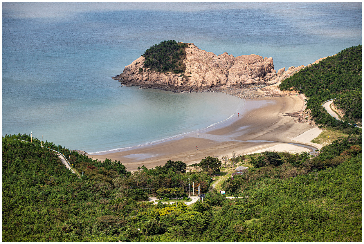 ▽ 정자쉼터에 미니버스가 도착하고 모두 탑승하여 도초항으로 가는 도중 하트해변을 조망할 수 있는 지점에서 잠시 하차하여 풍경을 담아 본다.