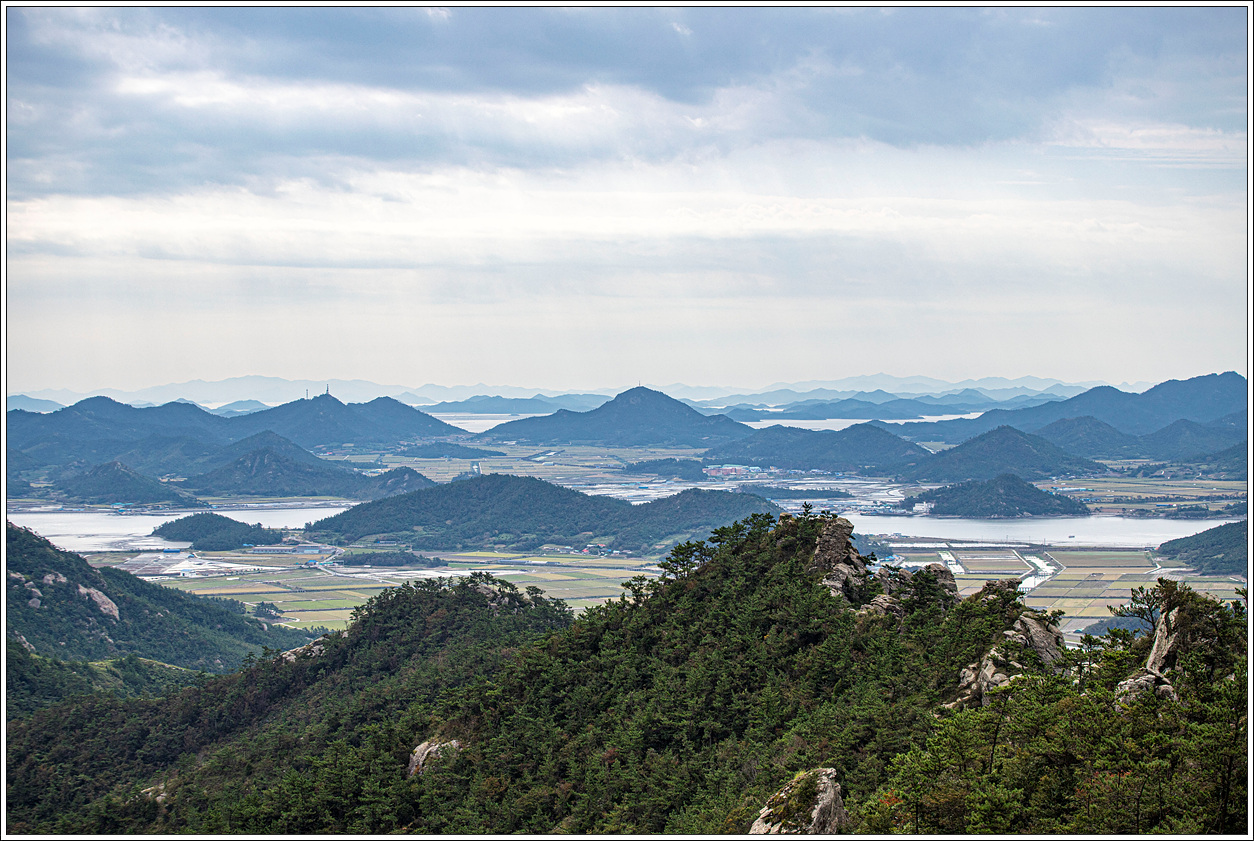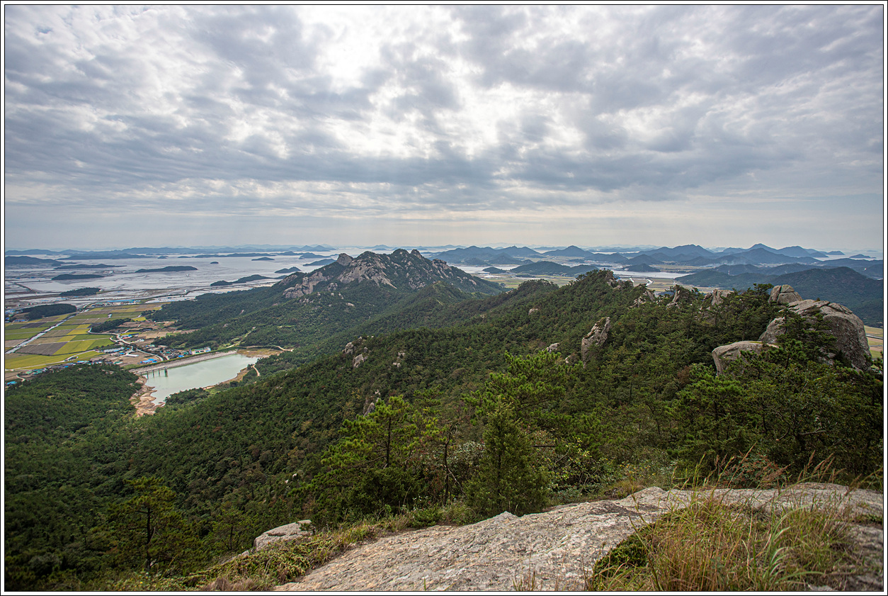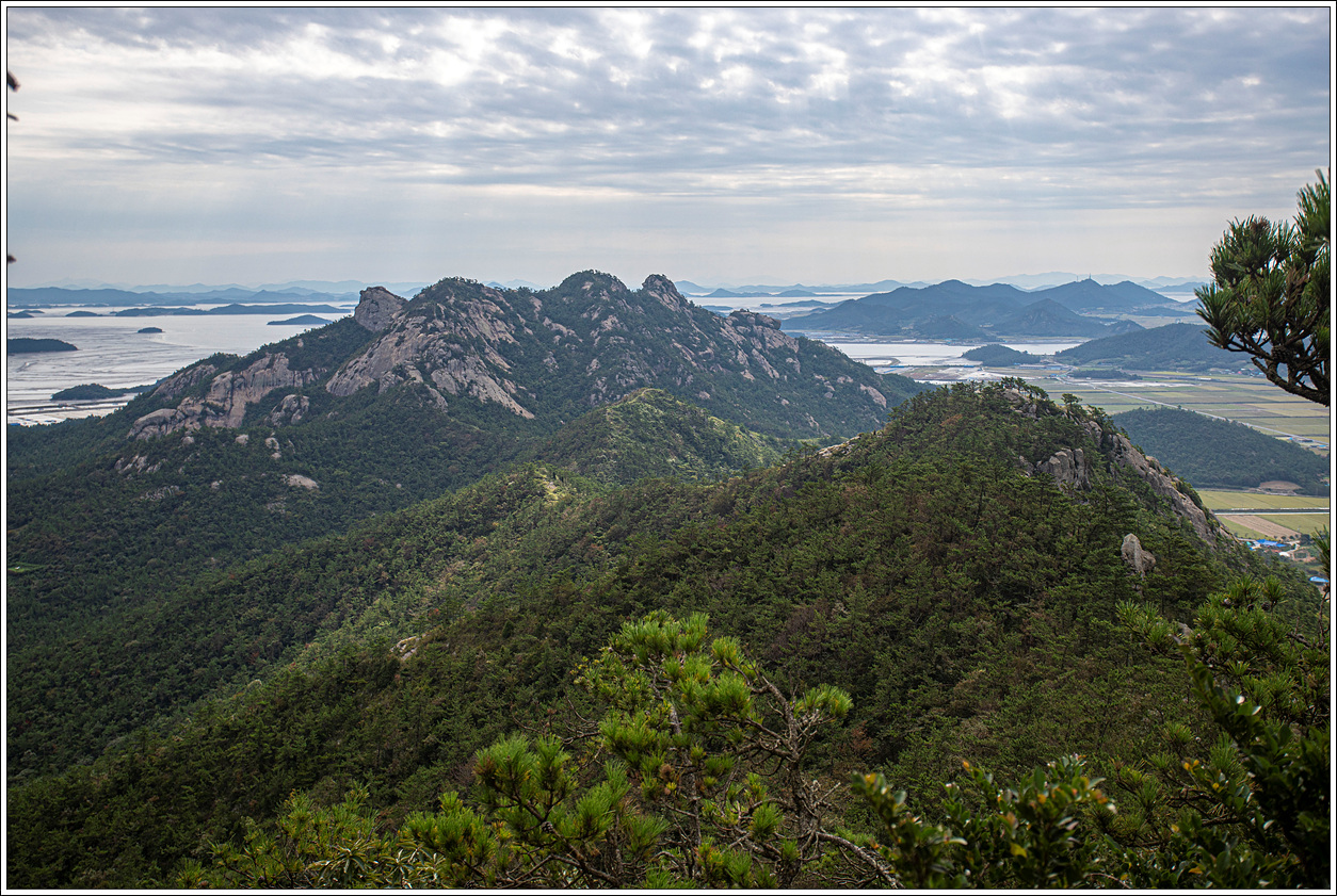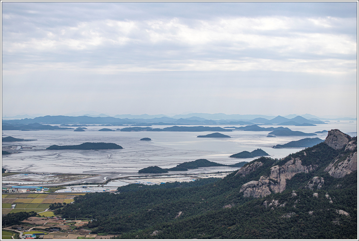 ▽ 북동방향의 풍경으로 왼쪽 멀리 자은도의 두봉산, 오른쪽으로 암태도의 승봉산이 보인다.