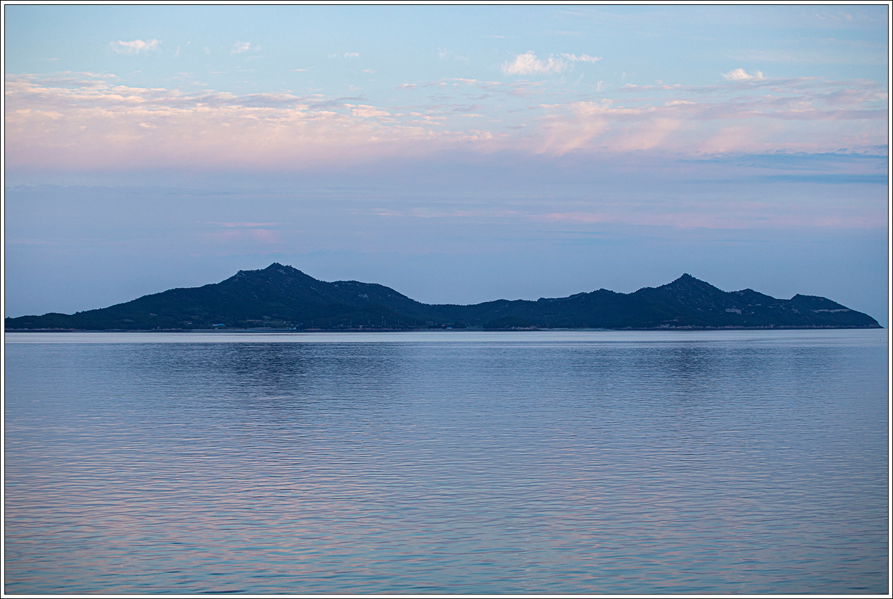 ▽ 도초도에도 많은 야산이 있음을 알 수 있다. 왼쪽은 도초도의 큰산, 가운데는 바다 건너 대야도의 무명산이다.
