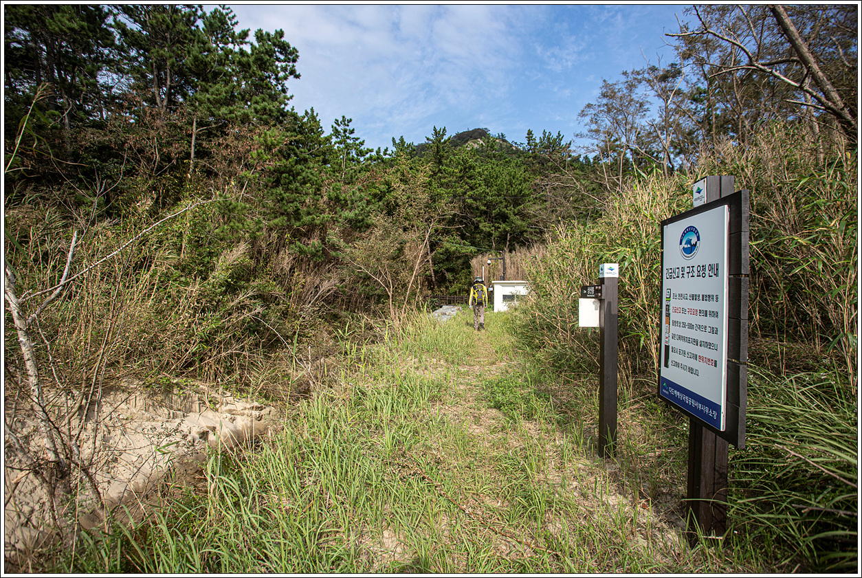 ▽ 화장실이 있는 건물쪽에 들머리가 있는가 했는데 산 해변으로 이어진 계곡이 있는 오른쪽으로 등로가 있다는 것이 해변에서는 잘 보이질 않아 자칫 초장부터 헤멜 뻔 했다.