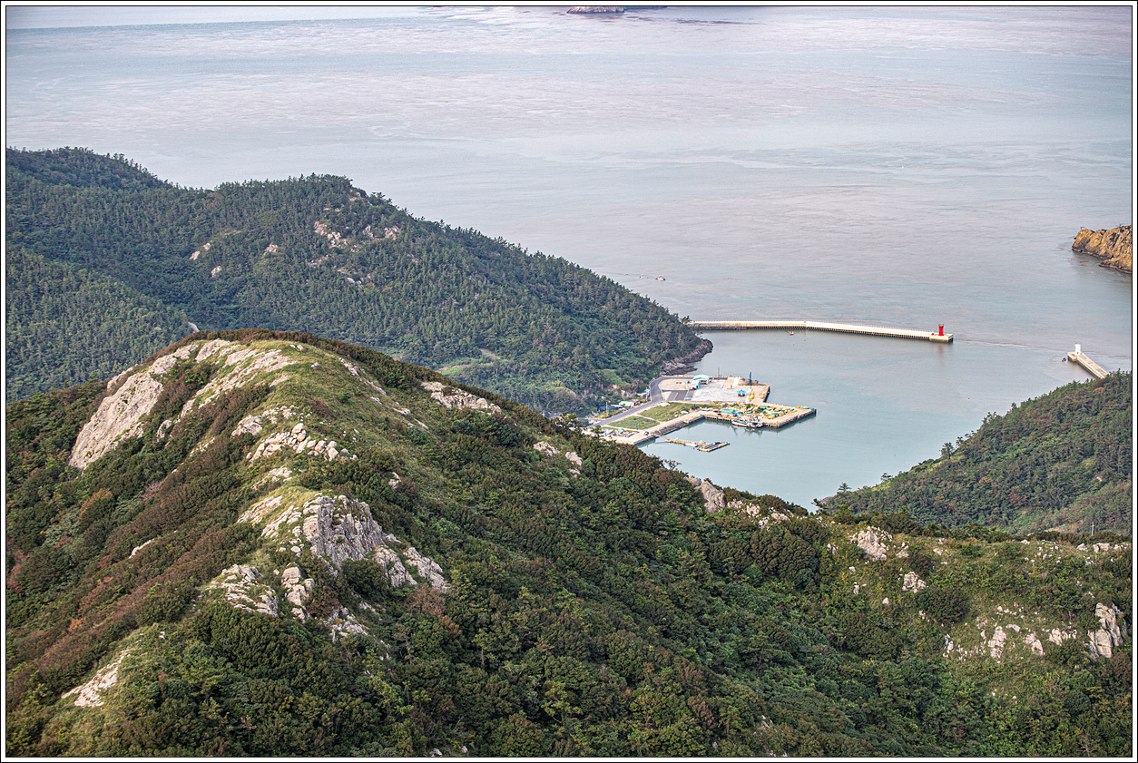 ▽ 다시 우이도 전경이 펼쳐지고 가운데 우뚝 솟은 상산봉이 고개를 내밀었다.
