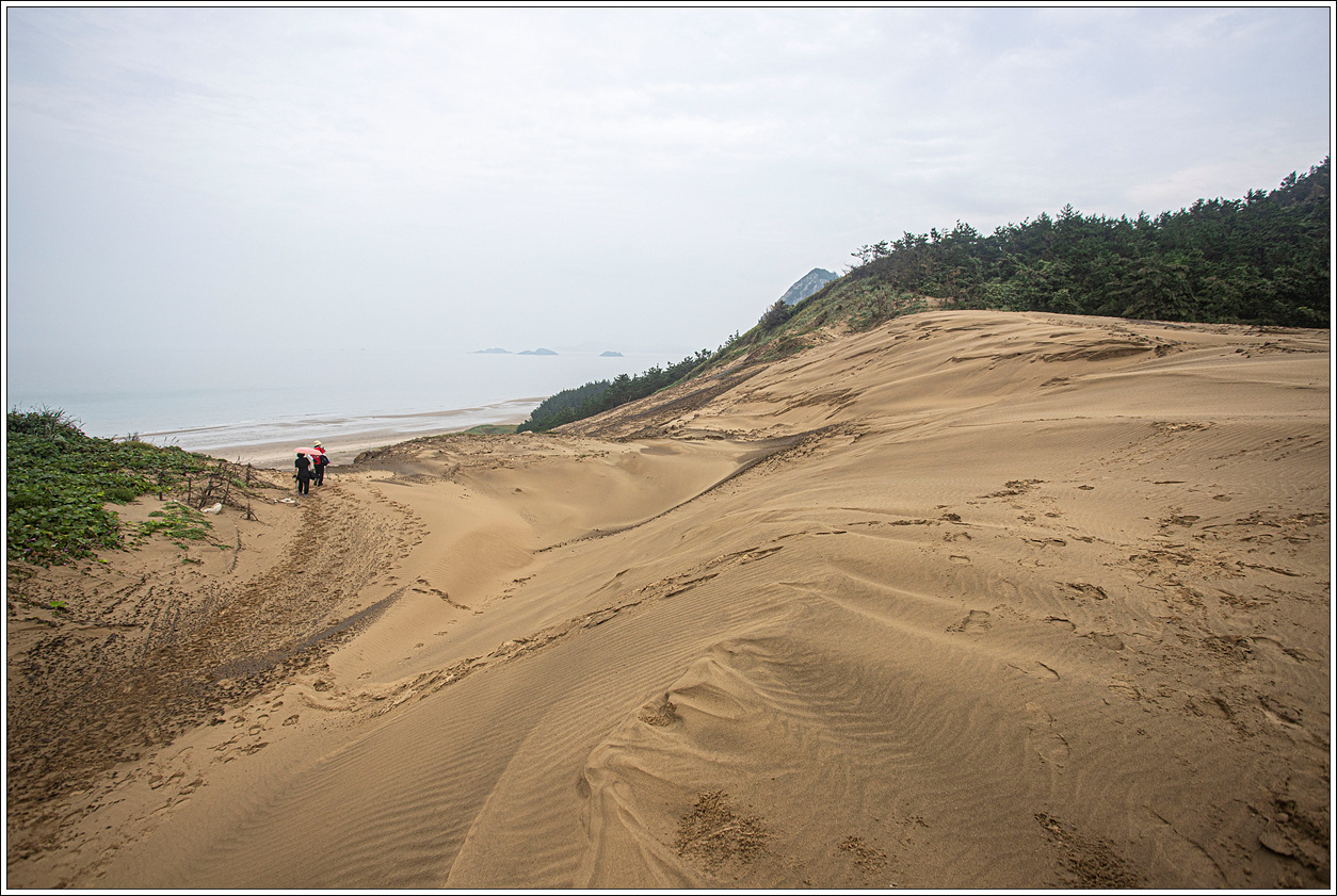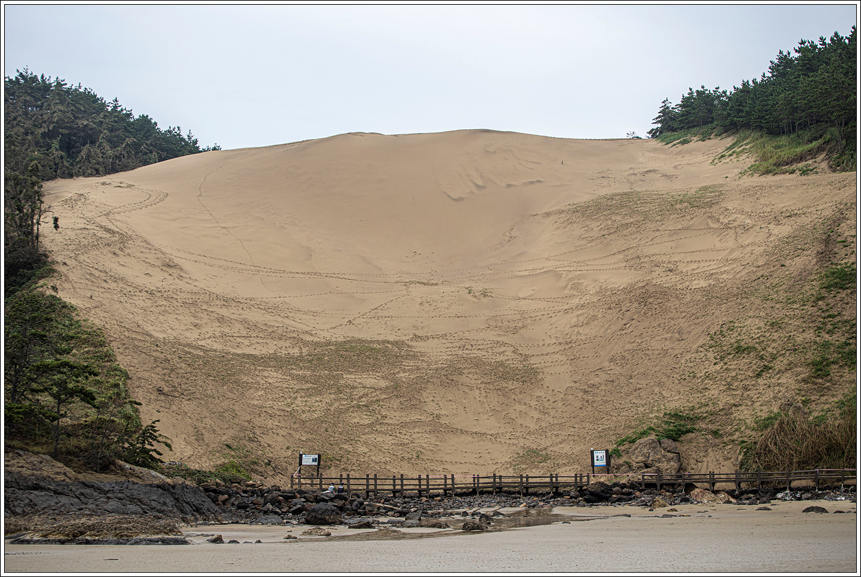 ▽ 아침에 일어나 식사를 한 후 각자 가고 싶은 곳을 탐방하는 날이다. 다행히도 비는 오는둥 마는둥 우산을 쓰지 않을 만큼의 날씨여서 다행히 아닐 수가 없다. 등로를 따라 우선 동양최대의 사구라고 불리는 풍성사구를 보기로 한다.