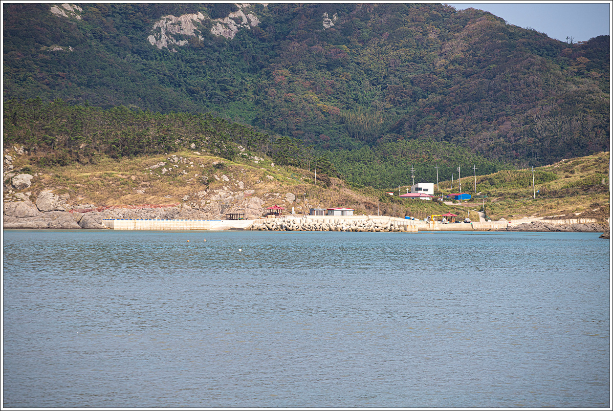 ▽ 성촌선착장에 가 보니 멀리 중간에 돈목해변이 바라다 보이고 오른쪽으로는 돈목선착장이 보인다. 이곳 성촌마을 사람들은 저곳 돈목선착장까지는 거리가 멀어 섬사랑6호는 승선인원이 한명이라도 있게 되면 이곳으로 와서 태우고 가게 된다.