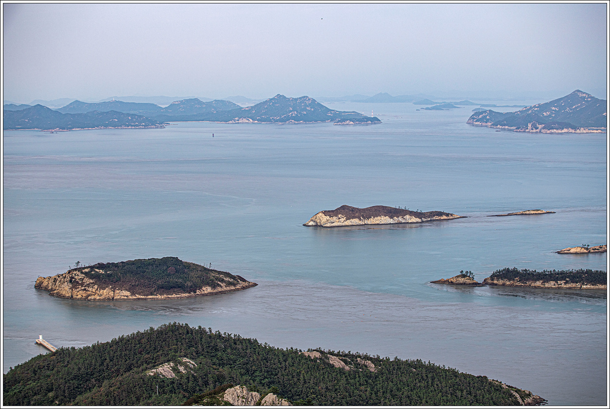 ▽ 앞쪽 긴 섬이 서소우이도, 뒷쪽 긴섬이 동소우이도로 우이3구에 속한다. 맨 왼쪽이 가도, 희고 가늘게 보이는 것이 백도, 서소우이도 바로 왼쪽이 송도, 맨 오른쪽은 화도이고 이곳 섬들을 한데 묶어 우이군도로 부른다.