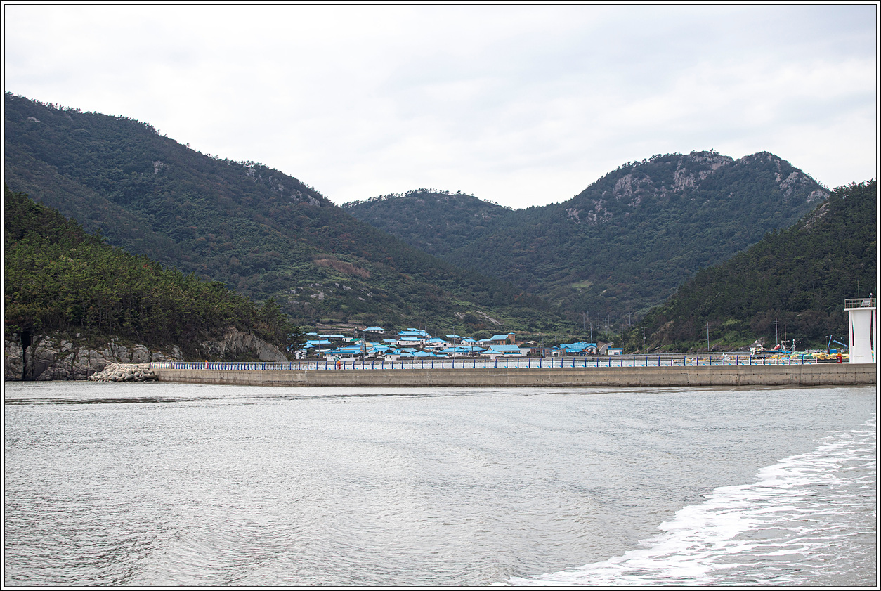 ▽ 드디어 우이도항(진리항)에 잠시 기착[寄着]을 했다가 출발하는 가운데 담아 본 풍경으로 비금도에서 봤던 파란색의 지붕이 이곳에서도 여일하다. 이곳에서 하선하여 홀로 상산봉을 올랐다가 민박집으로 넘어갈까 순간적으로 고민했다. 왜냐하면 이곳에서 서소이도, 동소이도를 거쳐 돈목선착장까지 가는 시간이면 많은 거리를 걸을 수가 있는데 반바퀴 돌아 목적지인 돈목선착장까지 가서 민박집에 짐을 풀고 상산봉에 16:00경에 오른다면 시간적 여유가 없을 것 같다는 판단이다. 또한 역사적 인물인 정약전 적거지 및 문순득 생가터 등을 못 본다는 아쉬움 때문인데 결국 개인행동 하기가 부담되어 포기하고 말았다.