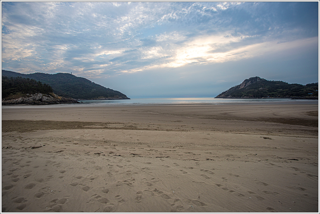 ▽ 날씨만 좋았다면 멋진 일몰도 볼 수 있었겠지만 옅게 드리워진 노을만으로도 너무 좋은 풍경이다. 너른 모래사장, 바람 한점 없는 조용한 바다를 보노라니 모든 세상사 잠시 잊게 되고 마음에 평온이 찾아 온다.