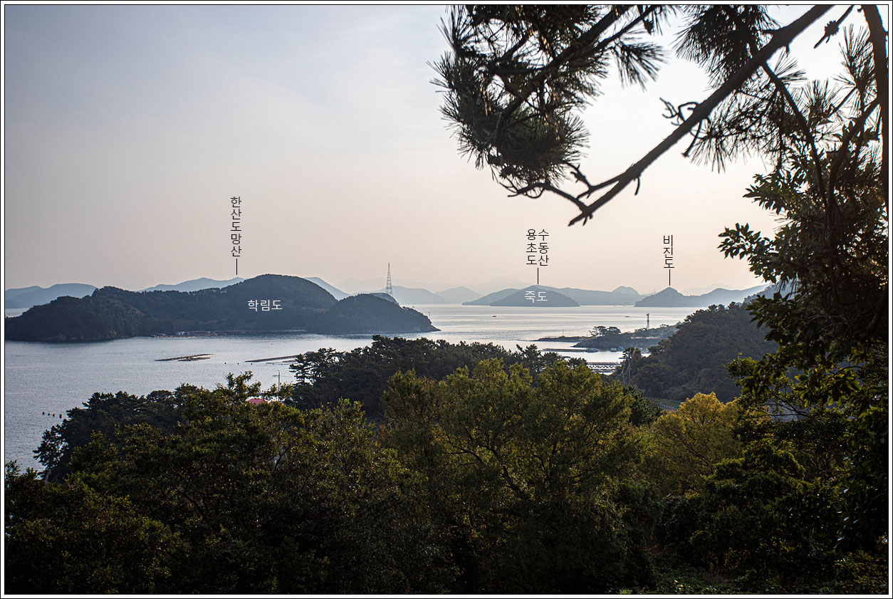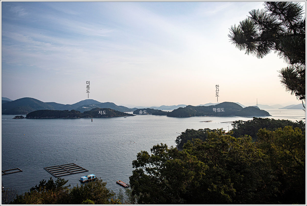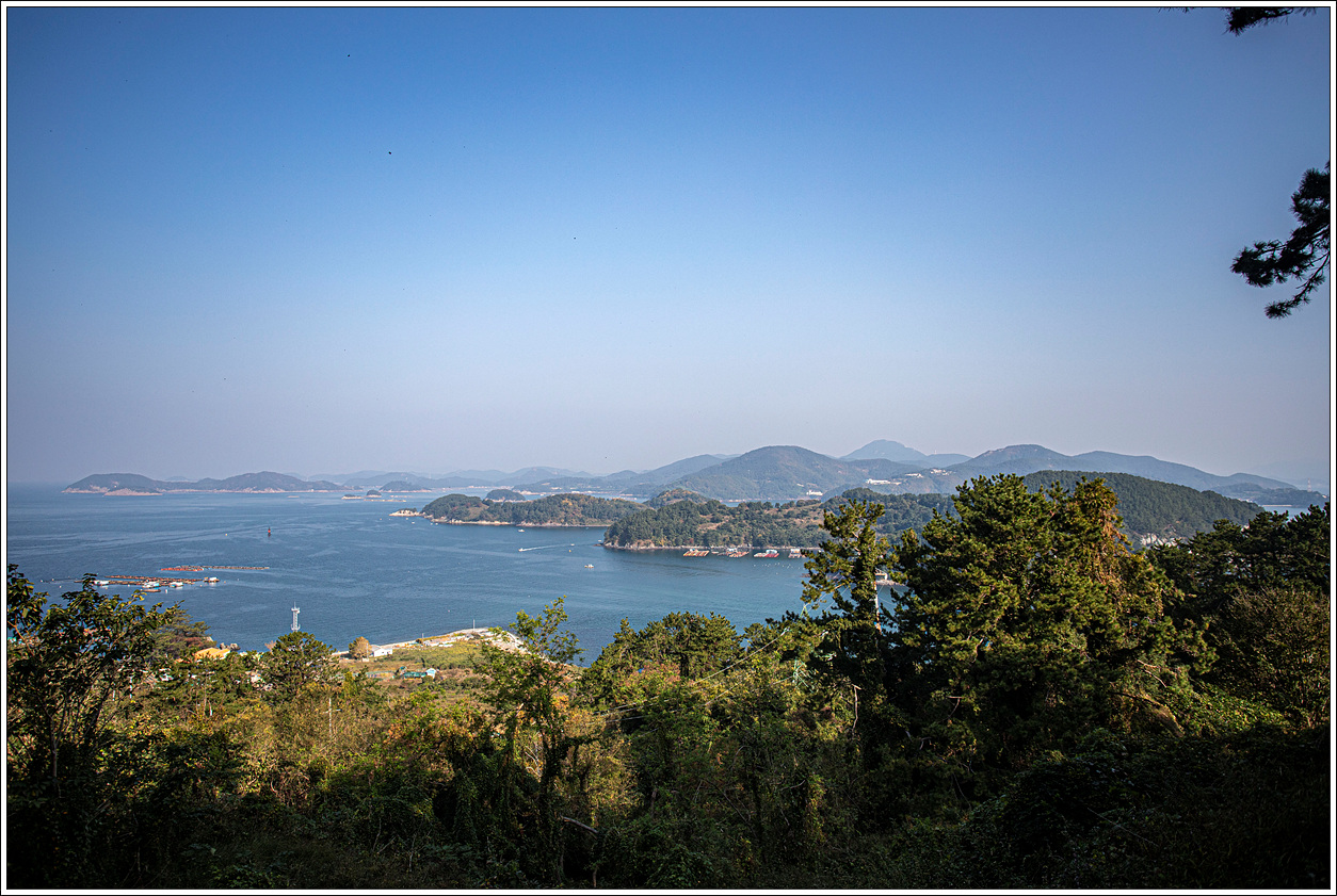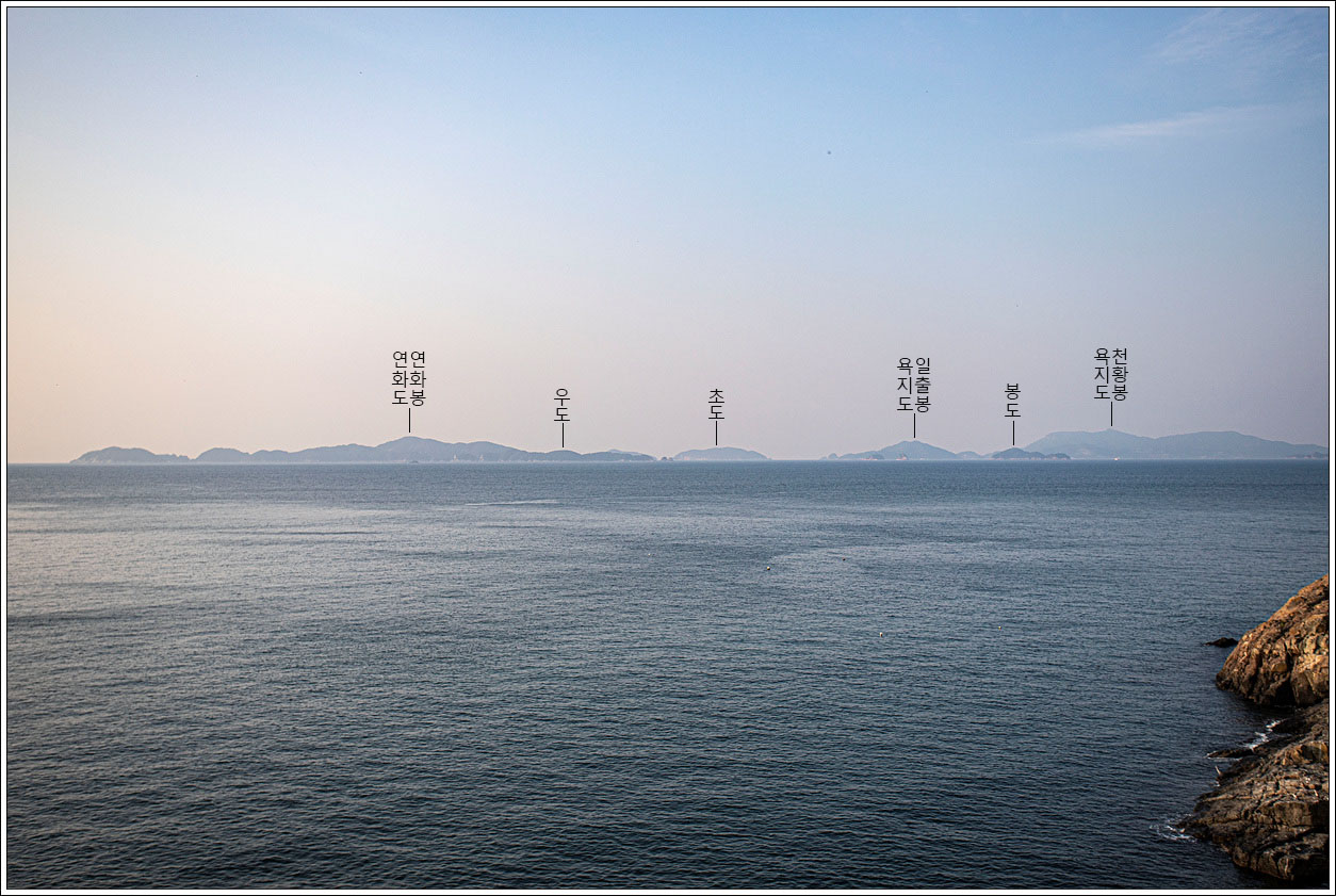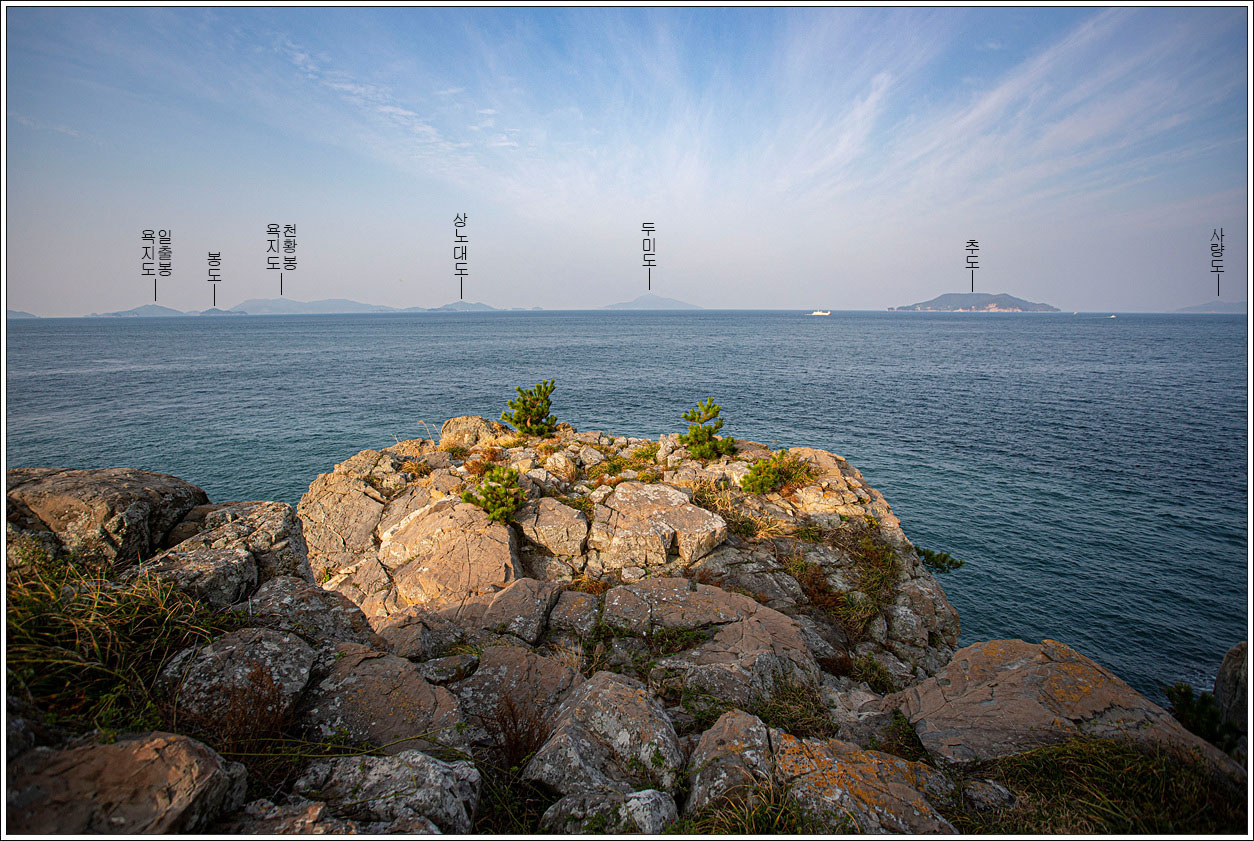▽ 그 오른쪽으로는 연화도, 우도, 욕지도가 파노라마처럼 펼쳐진다.