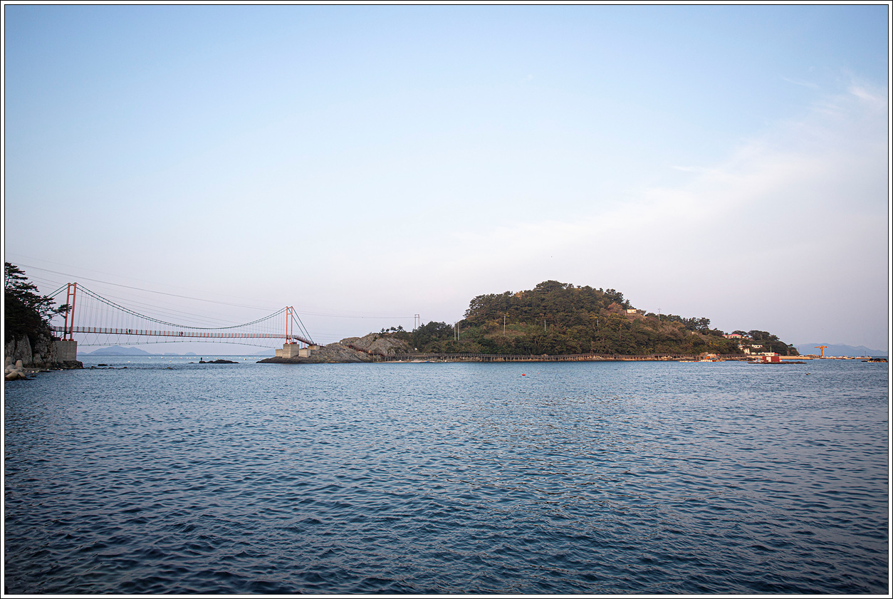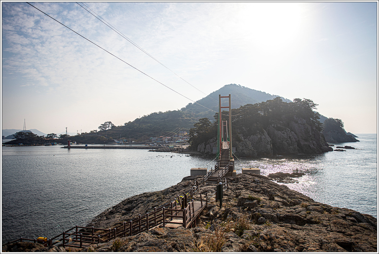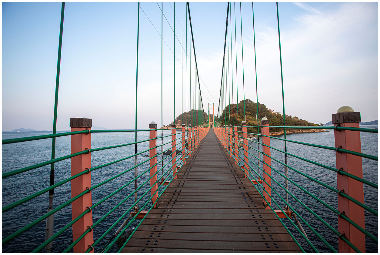이 출렁다리는 사람만 건널 수 있는 보도교이며 길이 98.1m. 폭 2m 규모의 현수교 형식이다. 통영시는 2013년 10월 22일에 착공, 국비 10억원 등 사업비 13억2천만원을 들여 2015년 1월 공사를 마치고 준공됐다. 그동안 두 섬은 100m 이내 거리에 있었지만 이 보도교로 인해 주민들이 배를 타고 오고 가야 하는 불편함을 해소하고 관광 활성화를 이루게 된 다리이다.