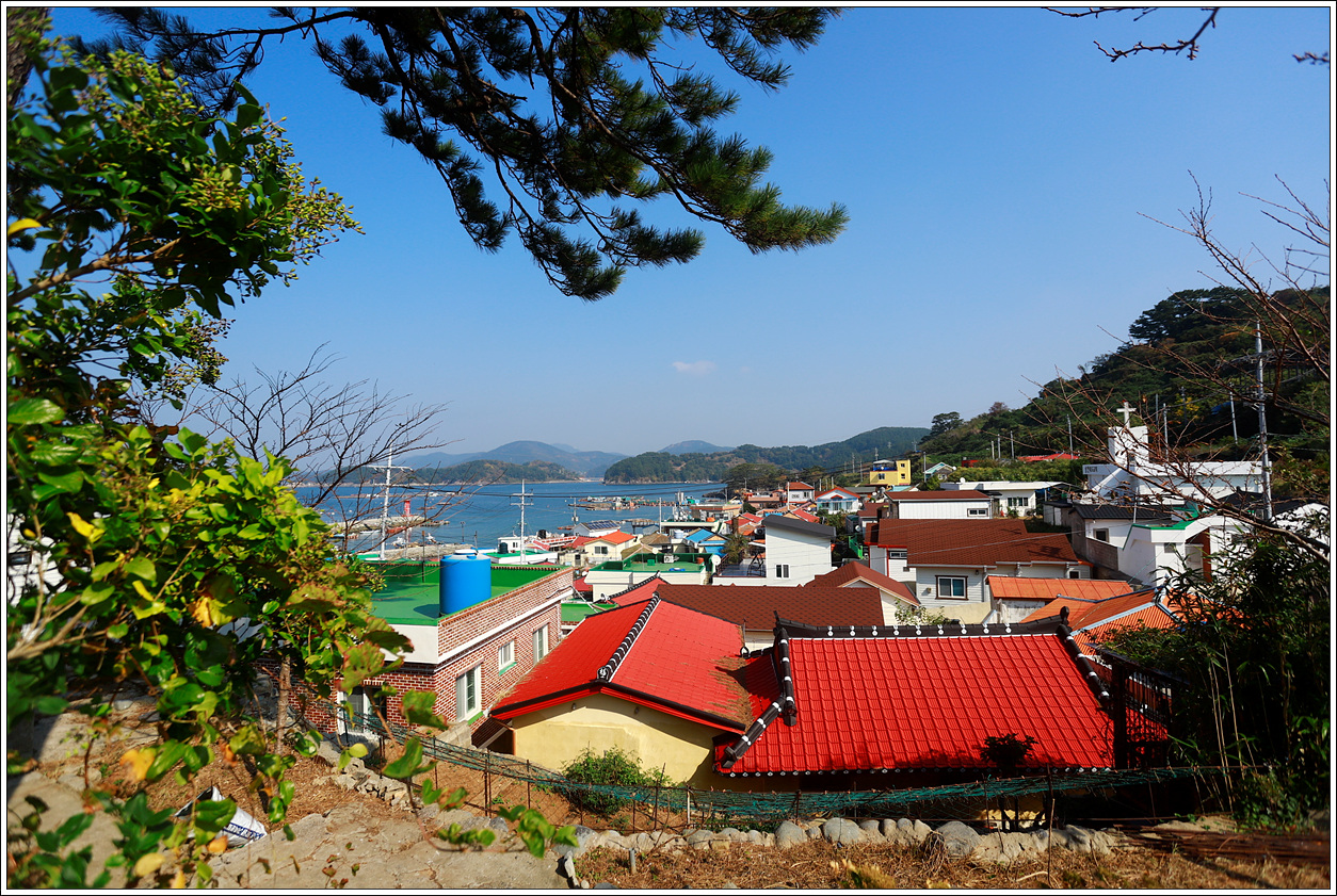 ▽ 저도의 저림리 마을 풍경...참고로 저도, 송도, 학림도, 만지도는 산양읍 저림리에 속하고 만지도와 출렁다리로 연결된 연대도는 오곡도, 내부지도, 외부지도와 함께 산양읍 연곡리에 속한다.