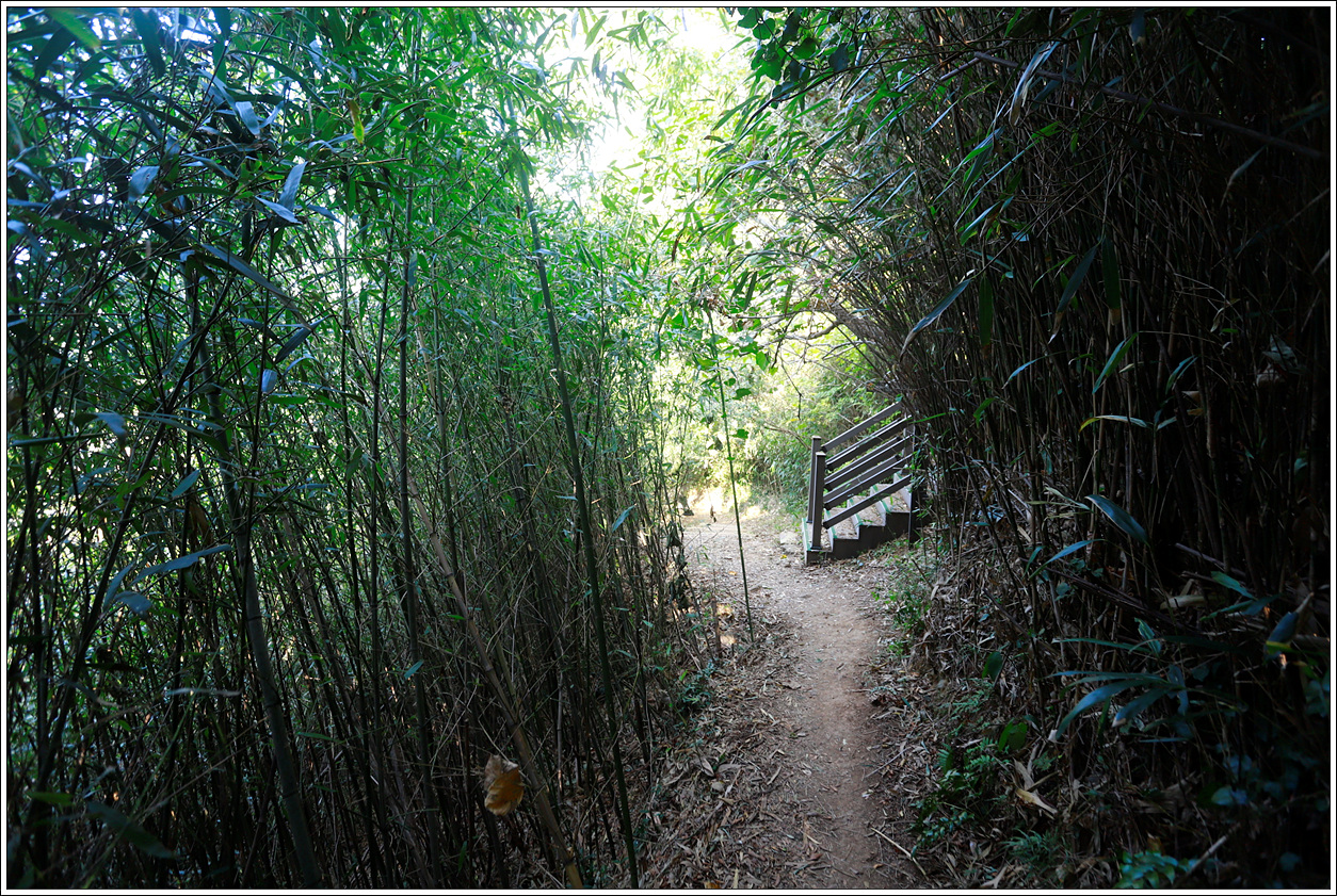 ▽ 평탄한 등로를 따라 이대숲을 지난다 했더니 마을에서 올라오는 지겟길로 연대봉을 바로 오르는 삼거리를 만난다.