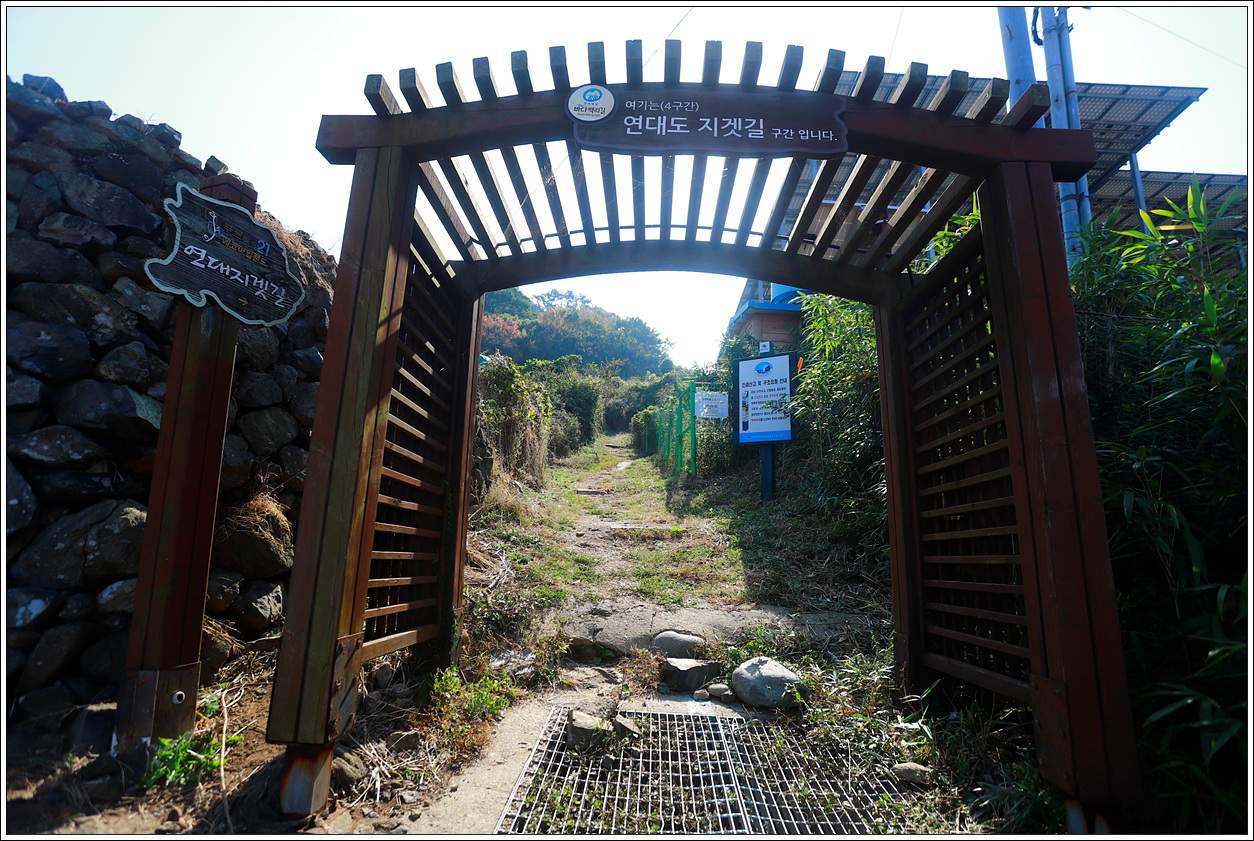 ▽ 마을 중간에서 오른쪽으로 연대봉을 곧바로 오를 수 있는 지겟길코스가 있으나 직진하여 우회길로 오르기로 한다. 연대도라는 이름은 "연기 연(煙), 돈대 대(臺)"자로서, 조선시대 왜적의 침입에 대비해 정상에 봉수대를 설치하였닥 하여 부르게 되었다고 한다.