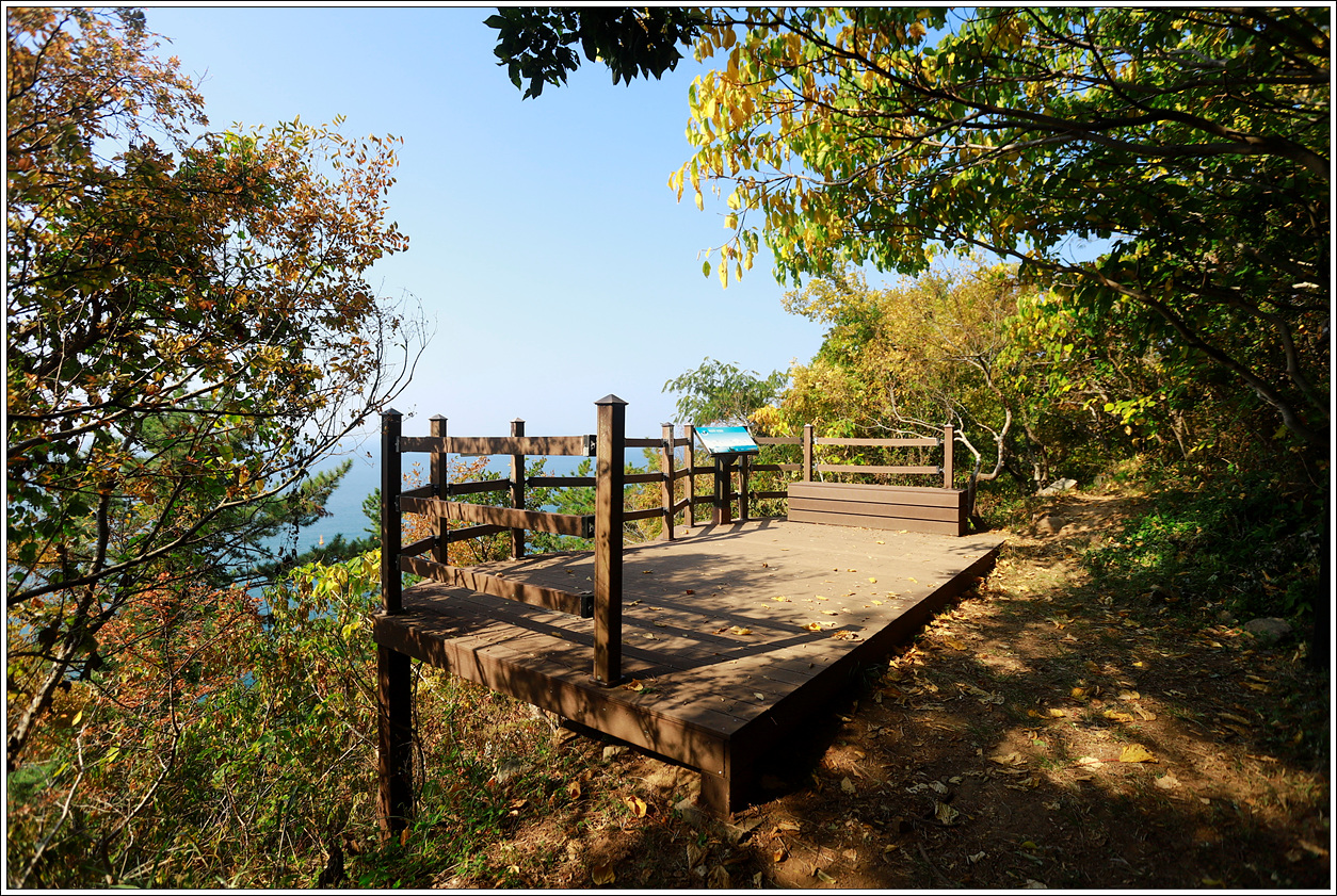 ▽ 북쪽 방향의 전망대에서 기를 받기 위해 올라서니 저도, 송도, 학림도가 한눈에 들어온다.