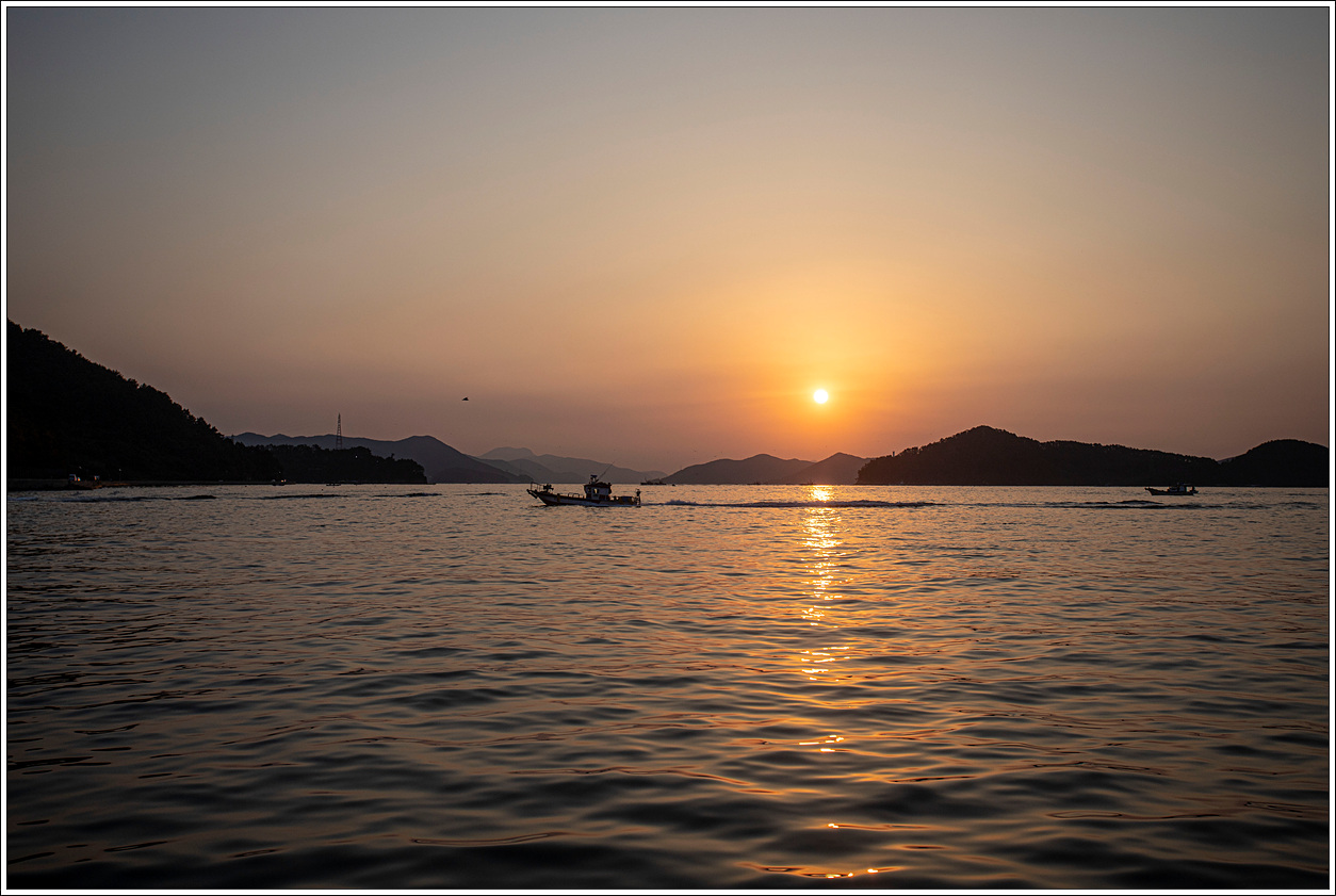 ▽ 멀리 용초도 위로 해가 떠 오른다.