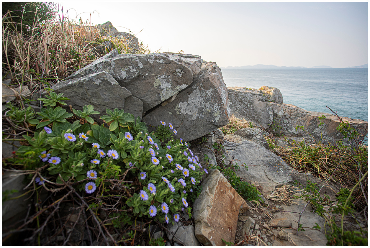 ▽ 바위 한켠에 절정으로 핀 해국과 반갑게 인사하고...
