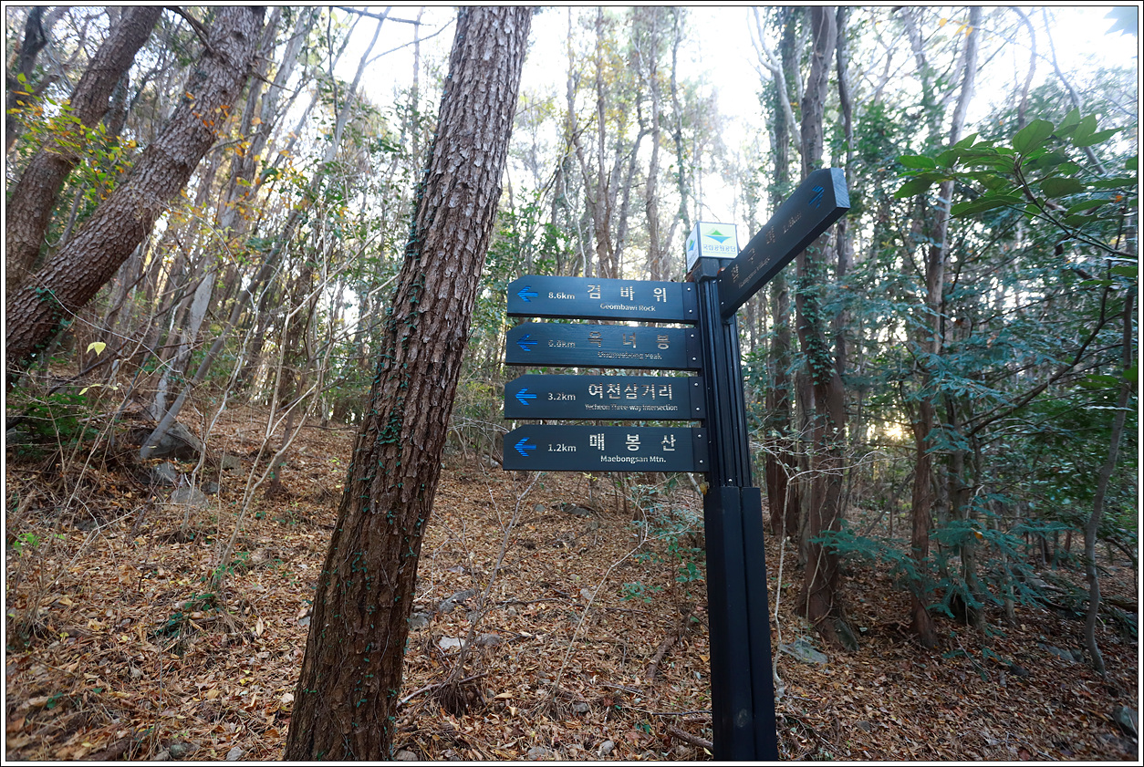 ▽ 여천선착장으로 내려가는 삼거리로 매봉산을 올랐다가 하산할 수 있는 가장 짧은 거리의 코스다.
