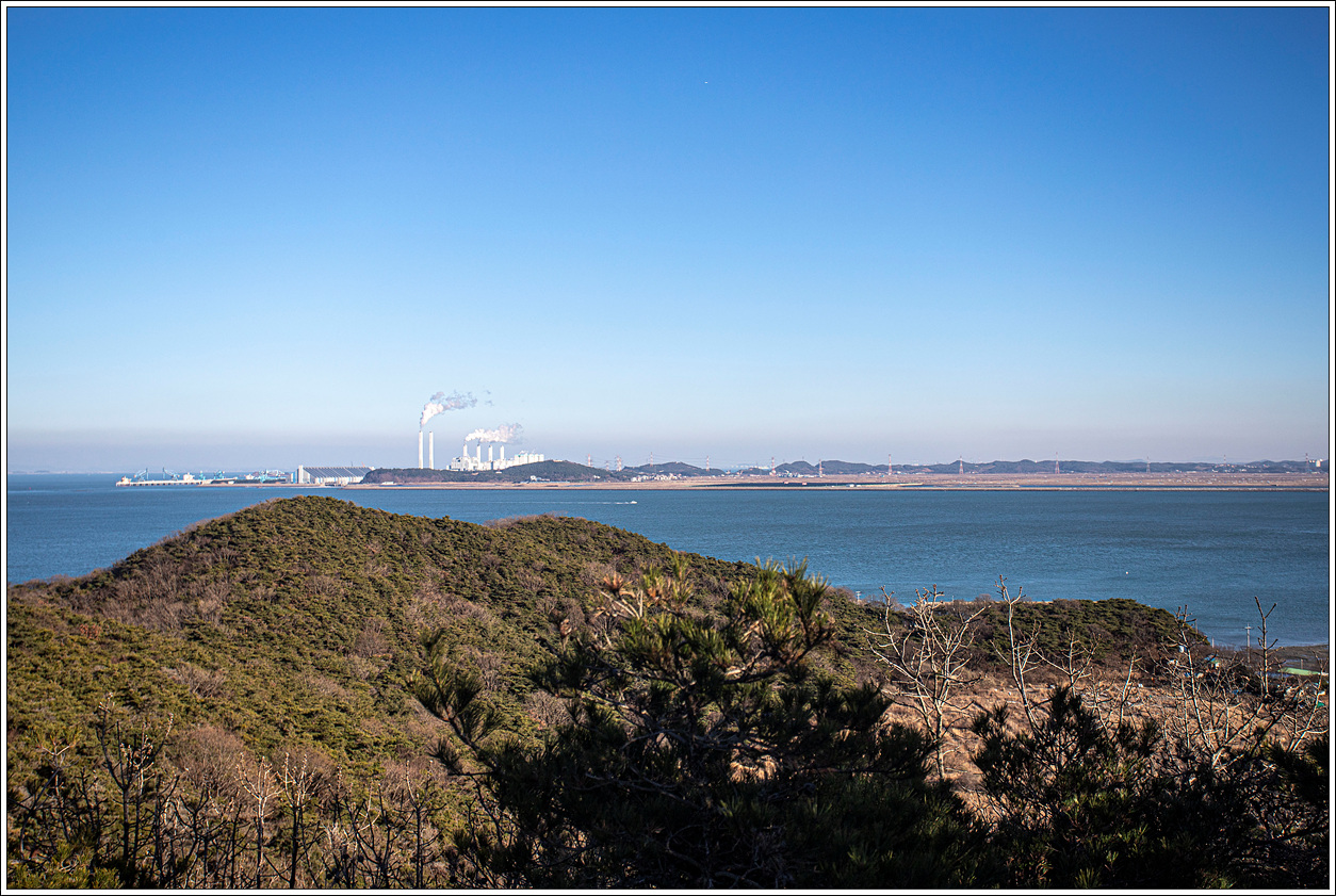 ▽ 유일하게 조망이 되는 능선 위에서 다시 한번 동쪽 방향으로 당진화력발전소를 바라보며 하산한다.