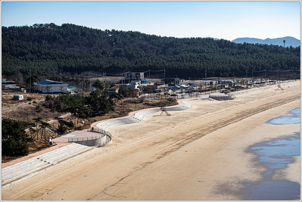 ▽ 지금까지 사람 모습이라고는 단 한 사람도 못 봤는데 이곳 전망대 만큼은 관광객을 볼 수 있지 않을까 하고 올라 와 봤지만 을씨년스럽게 차가운 바람만 휭하니 불 뿐이다. 그 넓은 해수욕장에도 개미 한마리 볼 수 없는 황량해 보이는 분위기다.