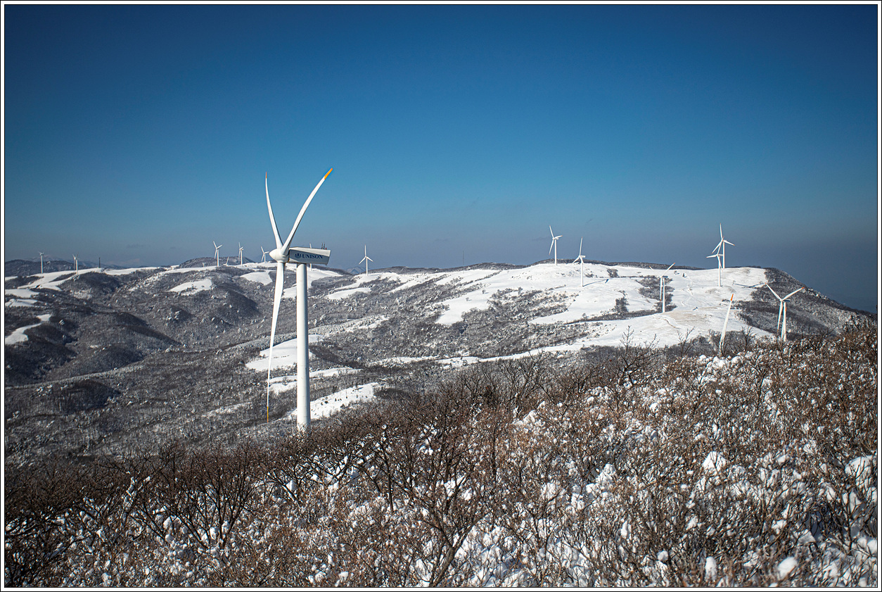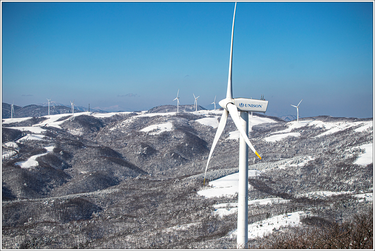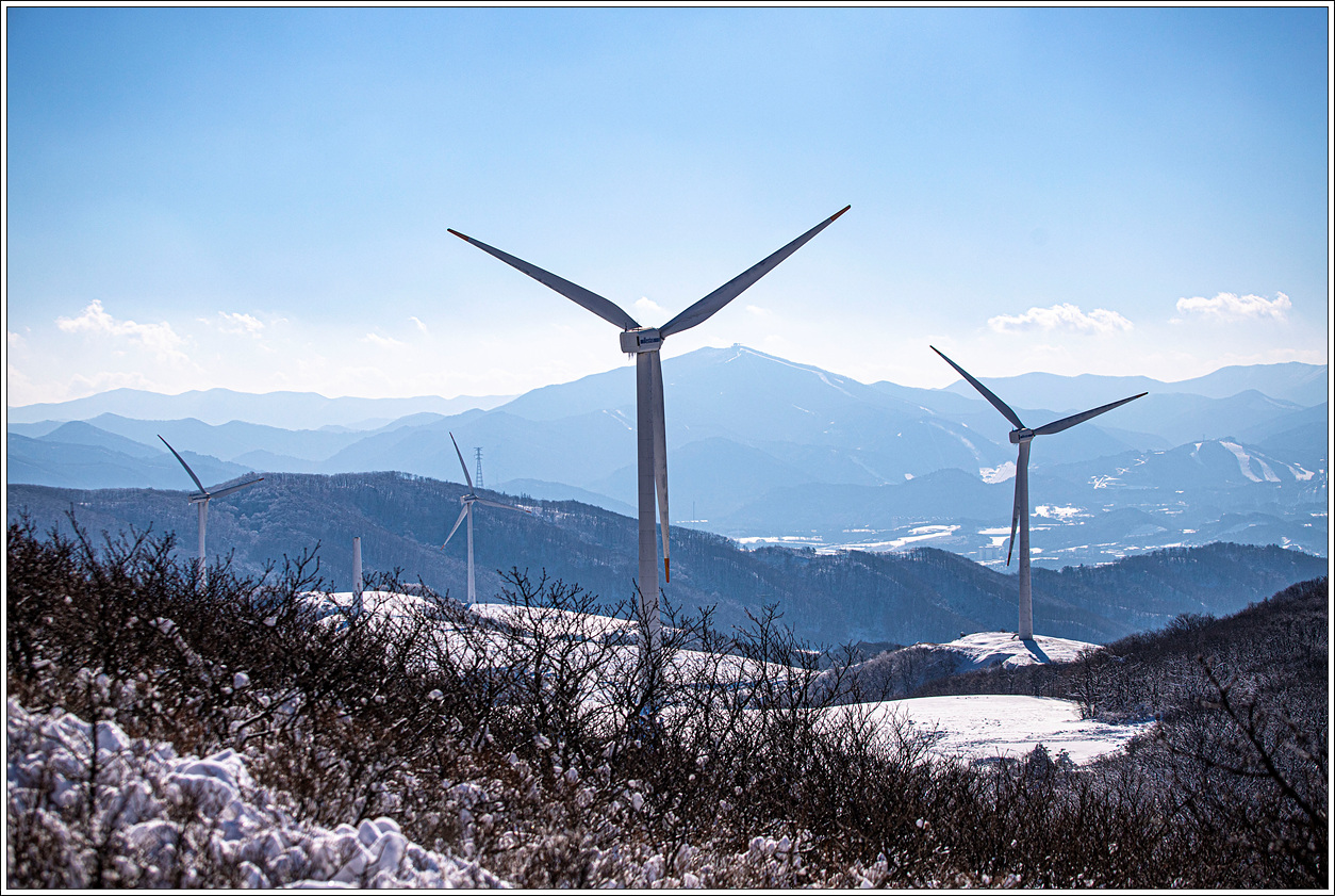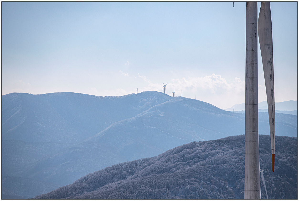 ▽ 서쪽 방향의으로 풍력발전기가 있는 능선 풍경