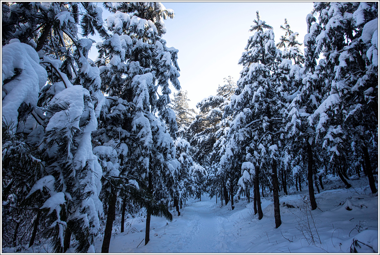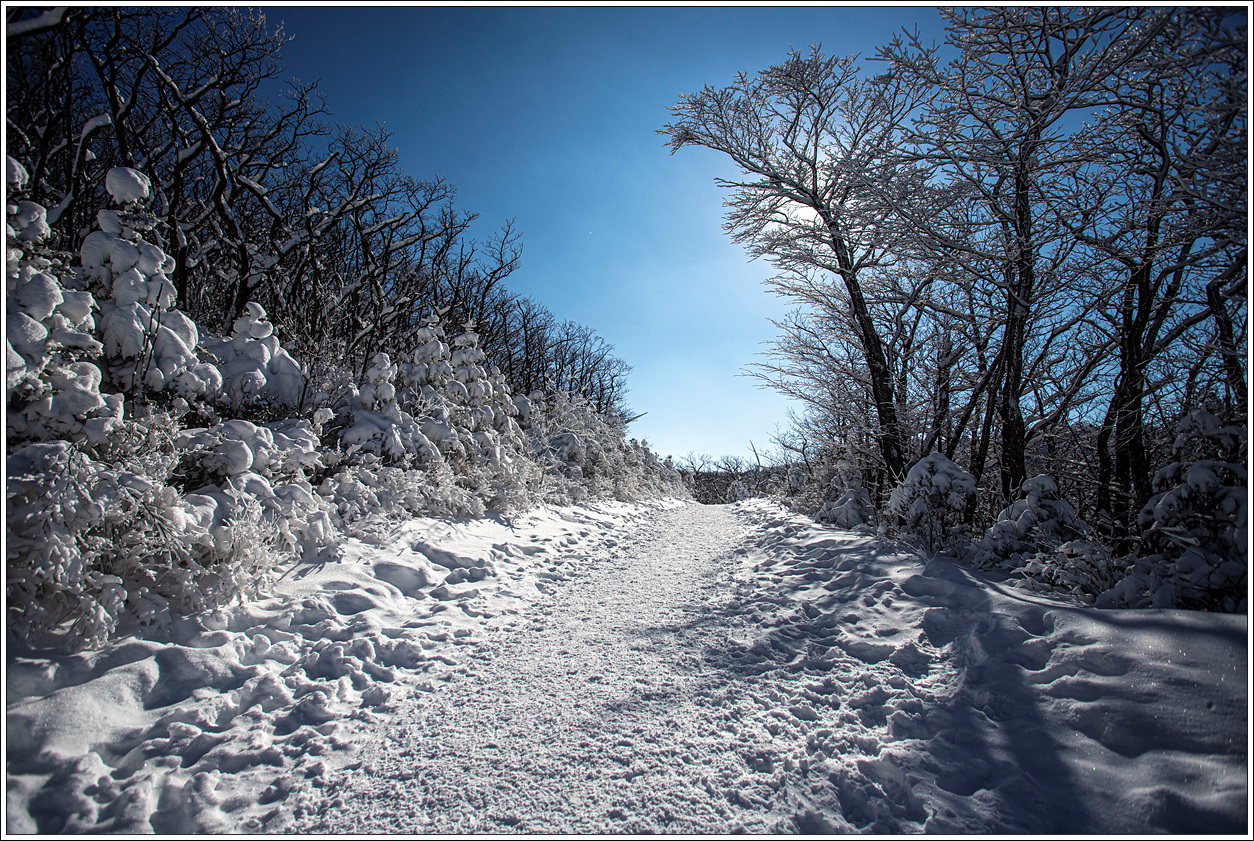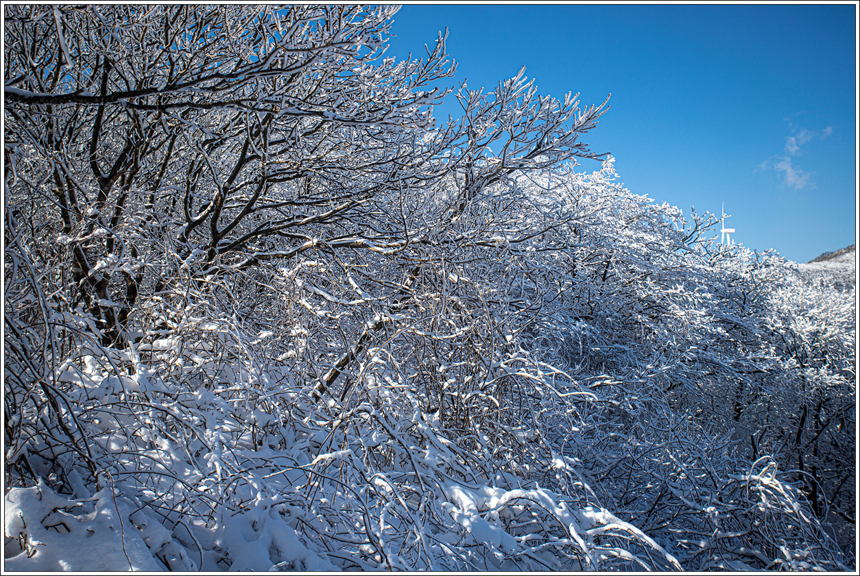 ▽ 다시 상록수림의 눈꽃의 아름다운 풍경이 발걸음을 멈추게 한다.