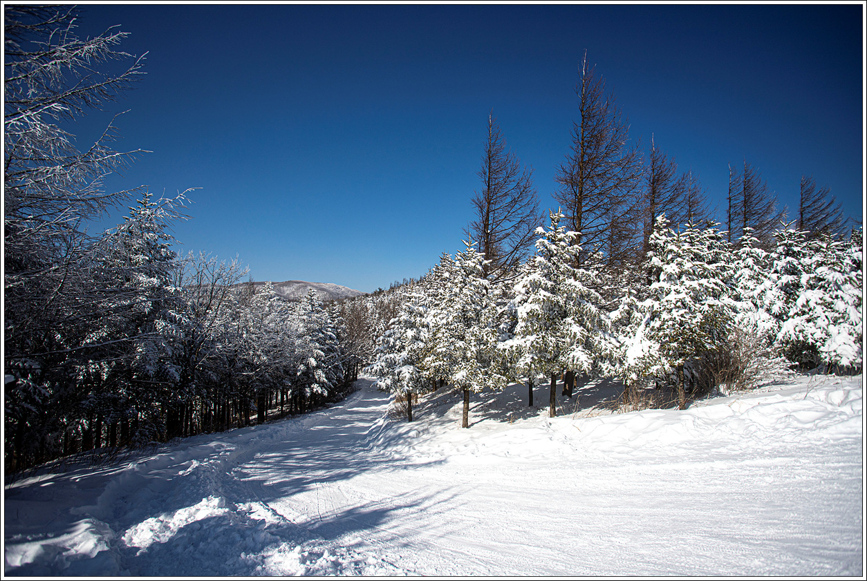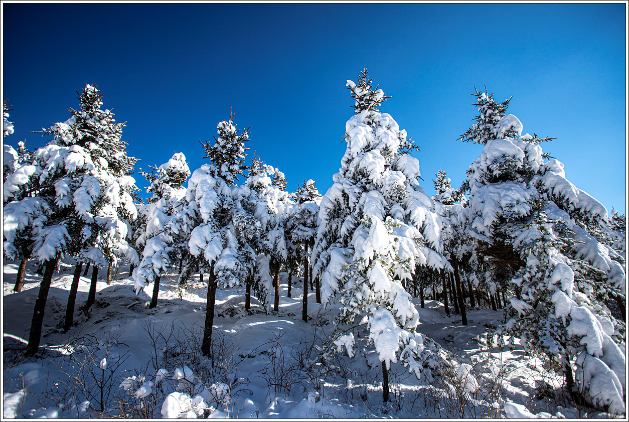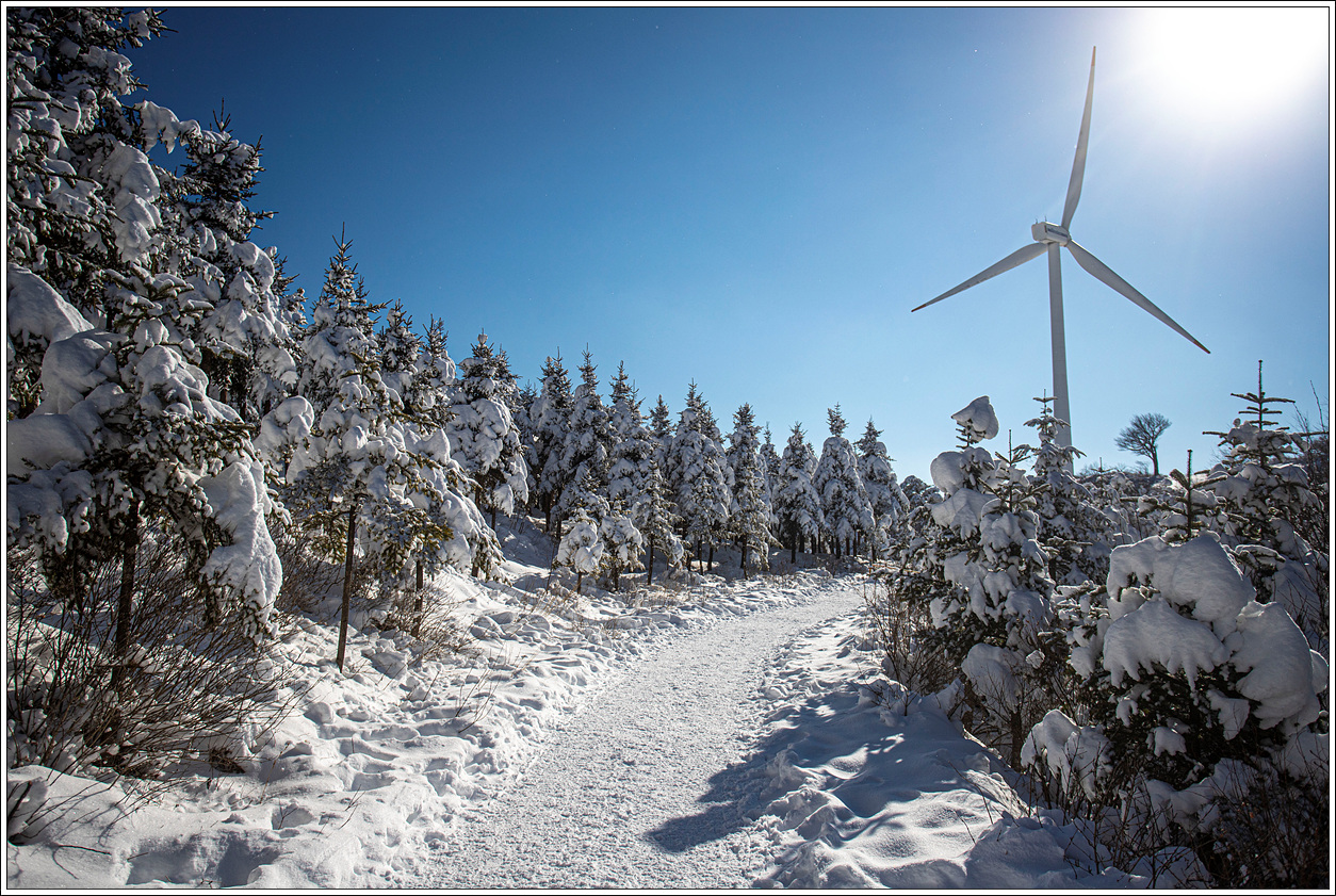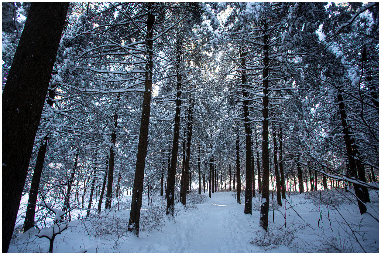 ▽ 다시 상록수림의 눈꽃의 아름다운 풍경이 발걸음을 멈추게 한다.