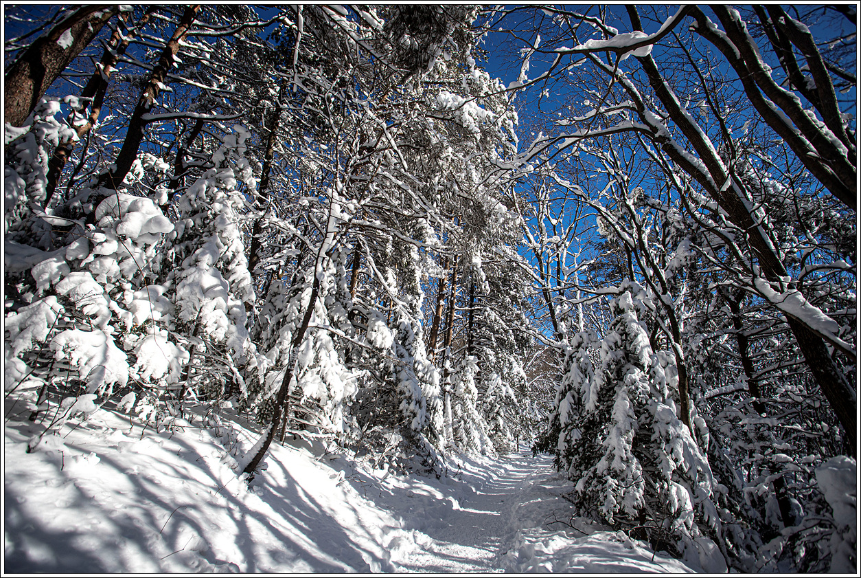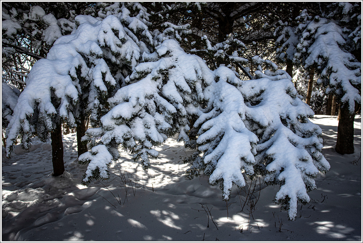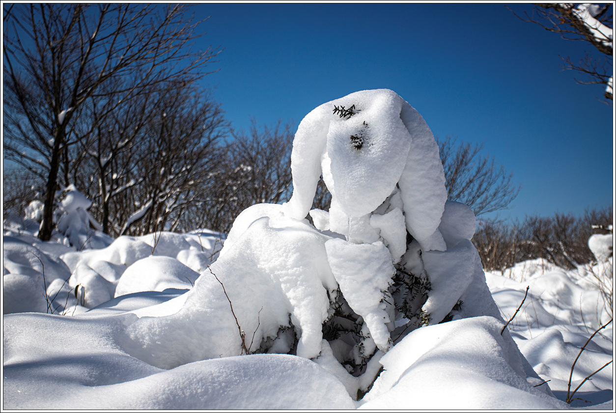 ▽ 기이한 모습으로 눈을 뗄 수 없는 풍경들인데 이번 눈은 습기를 많이 머금은 습설로 무게를 견디지 못한 어린 침엽수는 가지가 휘어지고, 꺾이고 수난을 겪는 모습이다.
