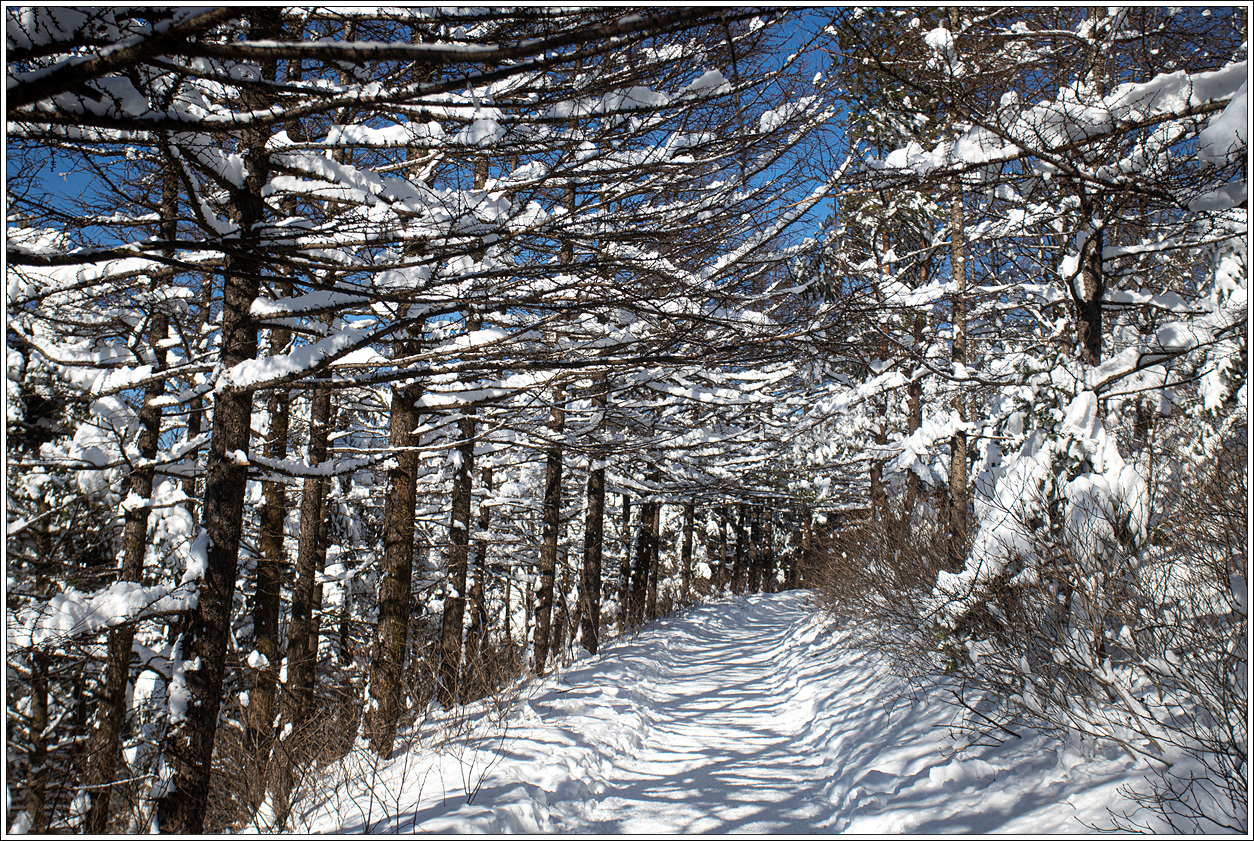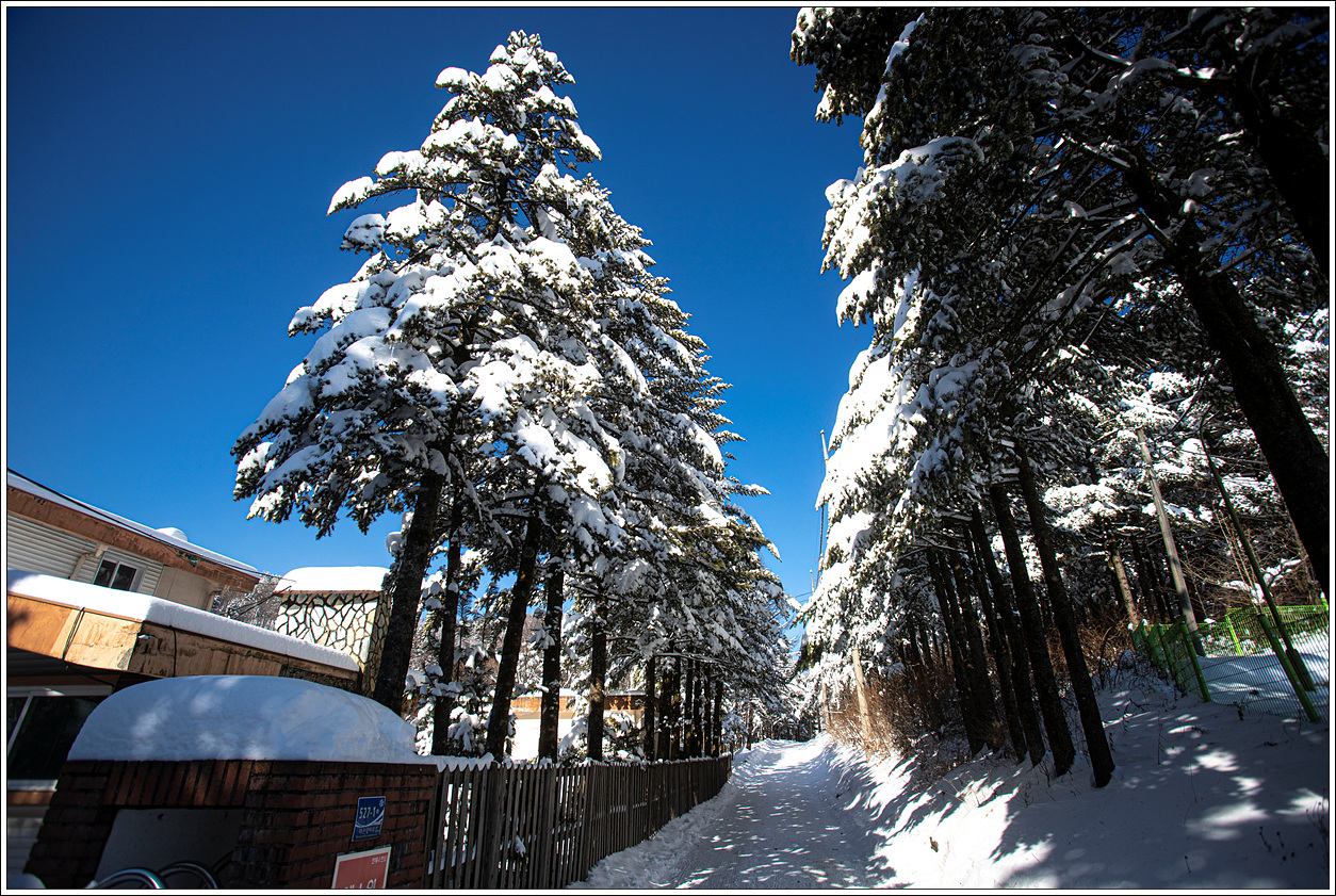 ▽ 일본잎갈나무(이명: 낙엽송)에 가지마다 쌓인 눈도 마치 금방 눈이 내린 것처럼 운치가 있는 풍경이다.